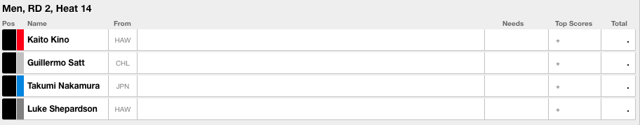 DAY1を終えた現時点での日本人プロサーファーの出場選手は、