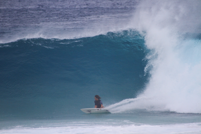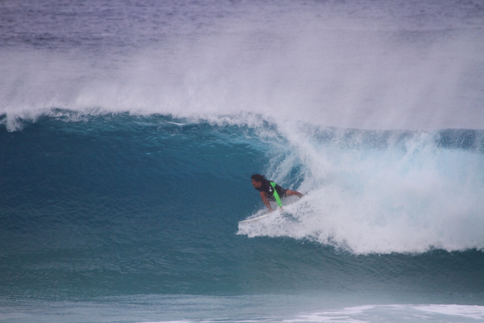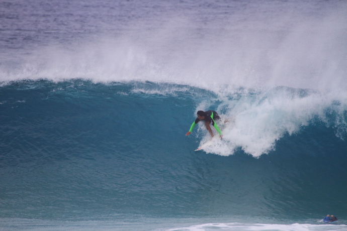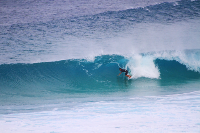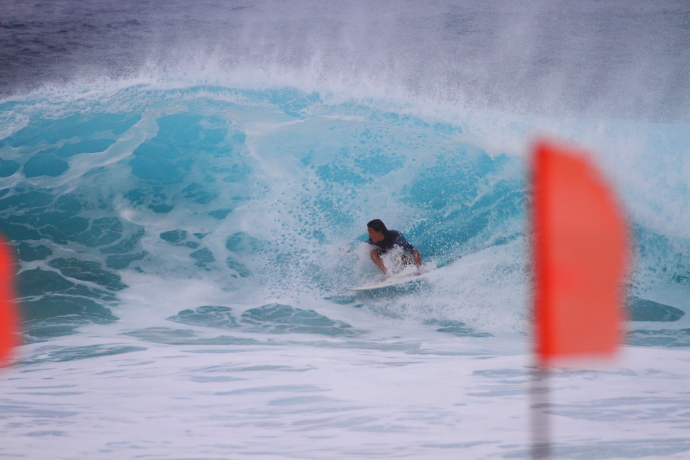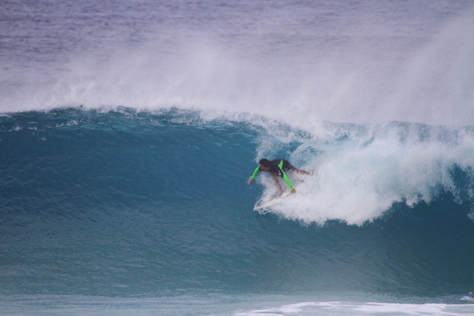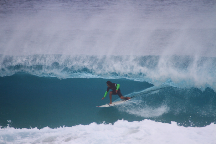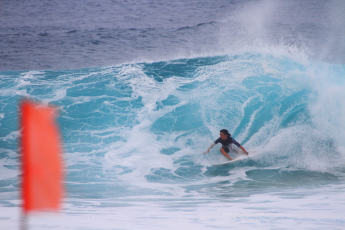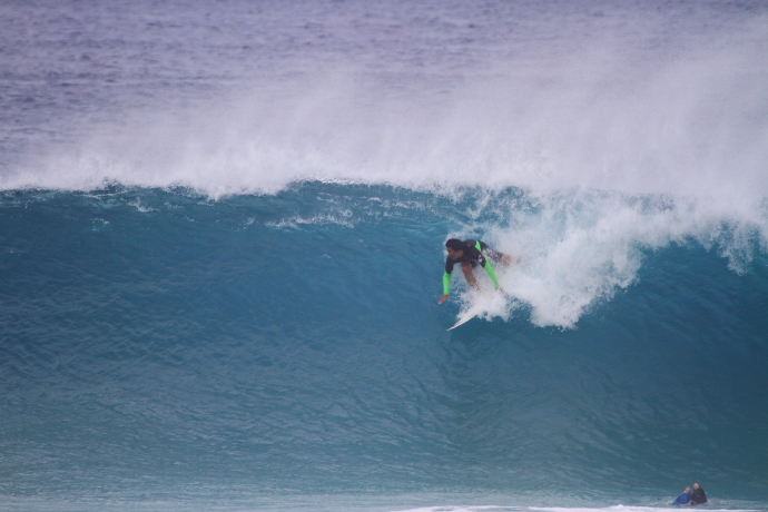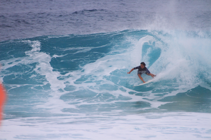 波は時折6ftのセットも入り、ほぼクローズアウト・コンディションのなか、