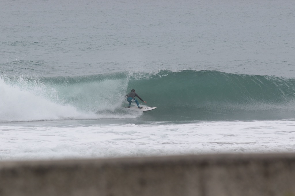 テイクオフ直後の絶妙なストール気味なボトムターン。