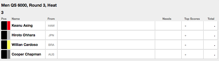 ラウンド3のヒート3でKeanu Asing(HAW)、Willian Cardoso(BRA)、