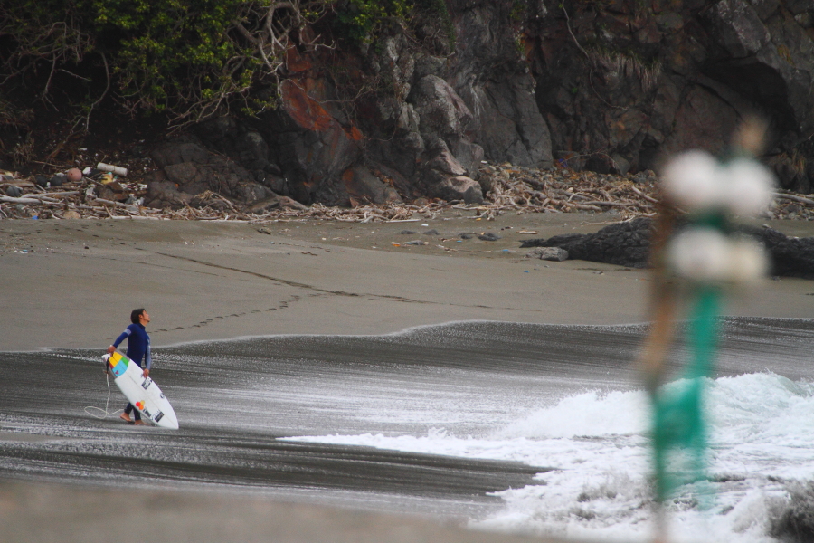 波伝説スタッフでプロサーファーの上條”マッチ”将美。