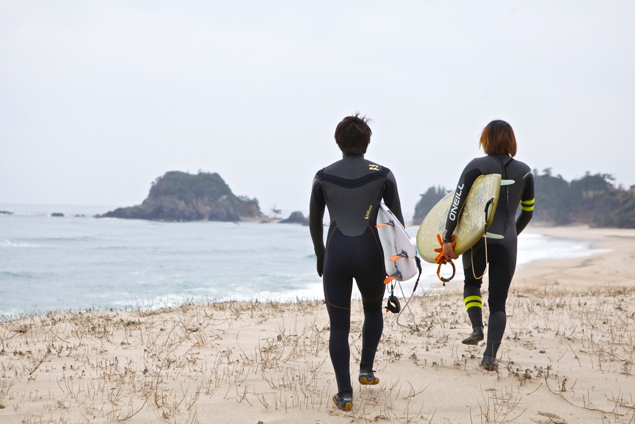 貸し切りのビーチブレイクで思う存分にラインを刻み込んだ二人。