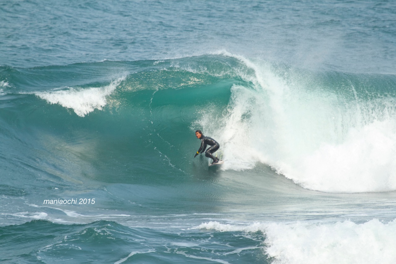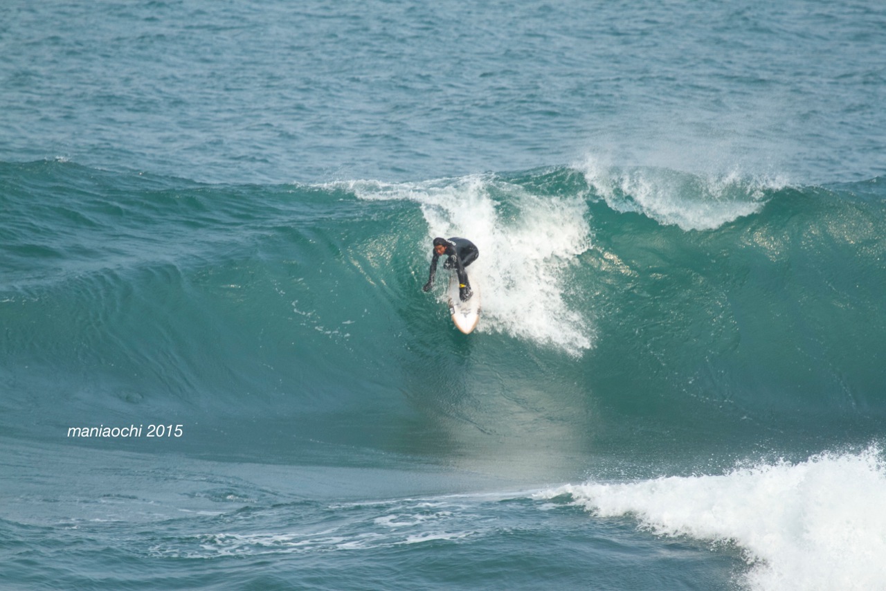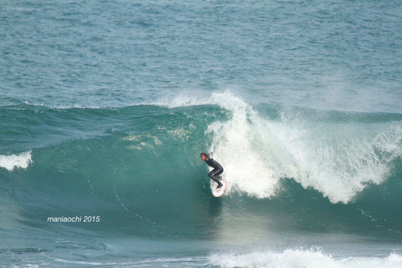 ここの波特有の底掘れする恐ろしい波に猛チャージを魅せ、