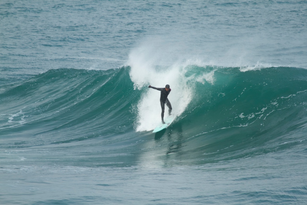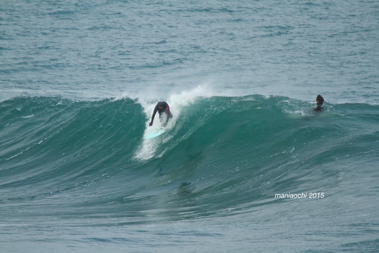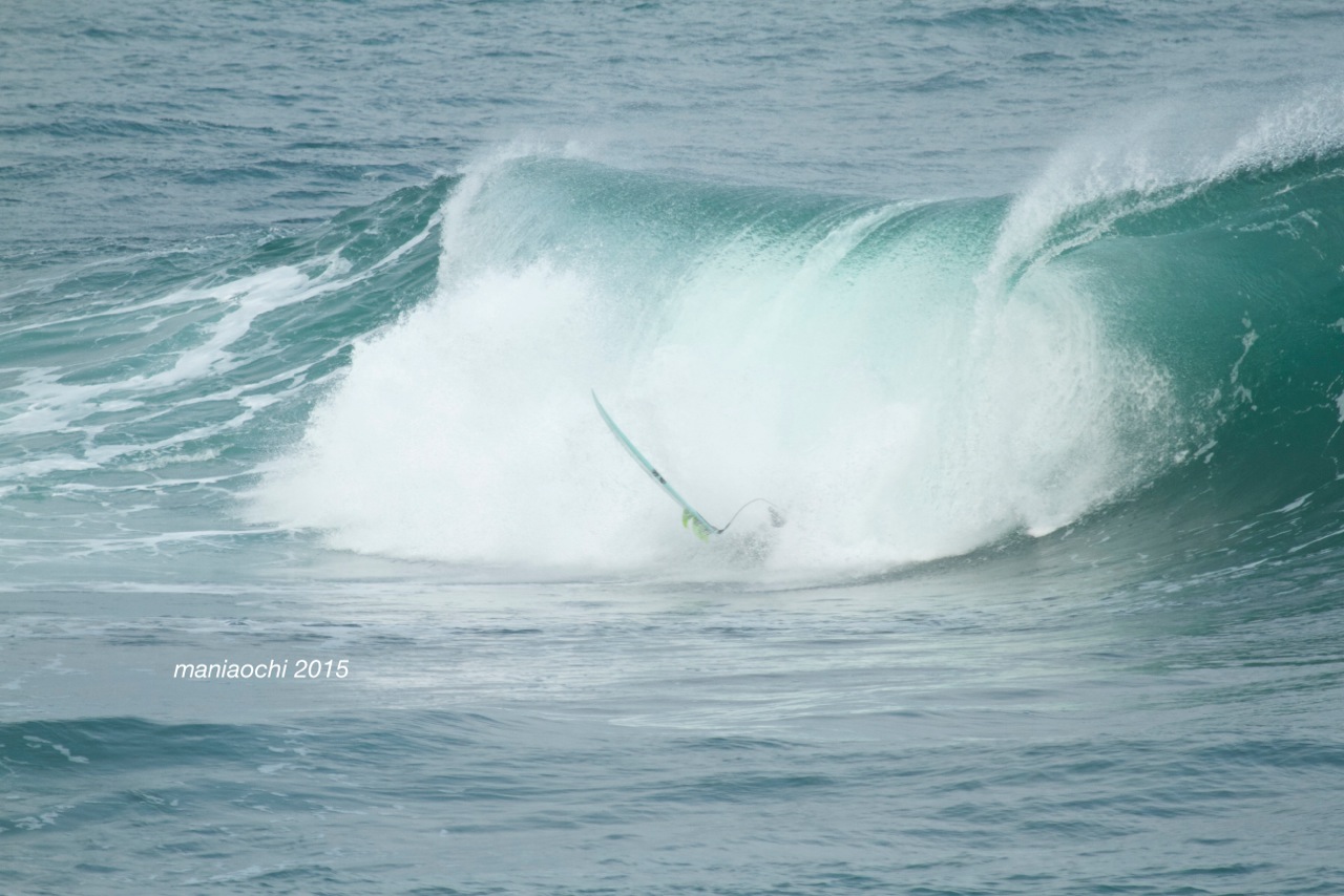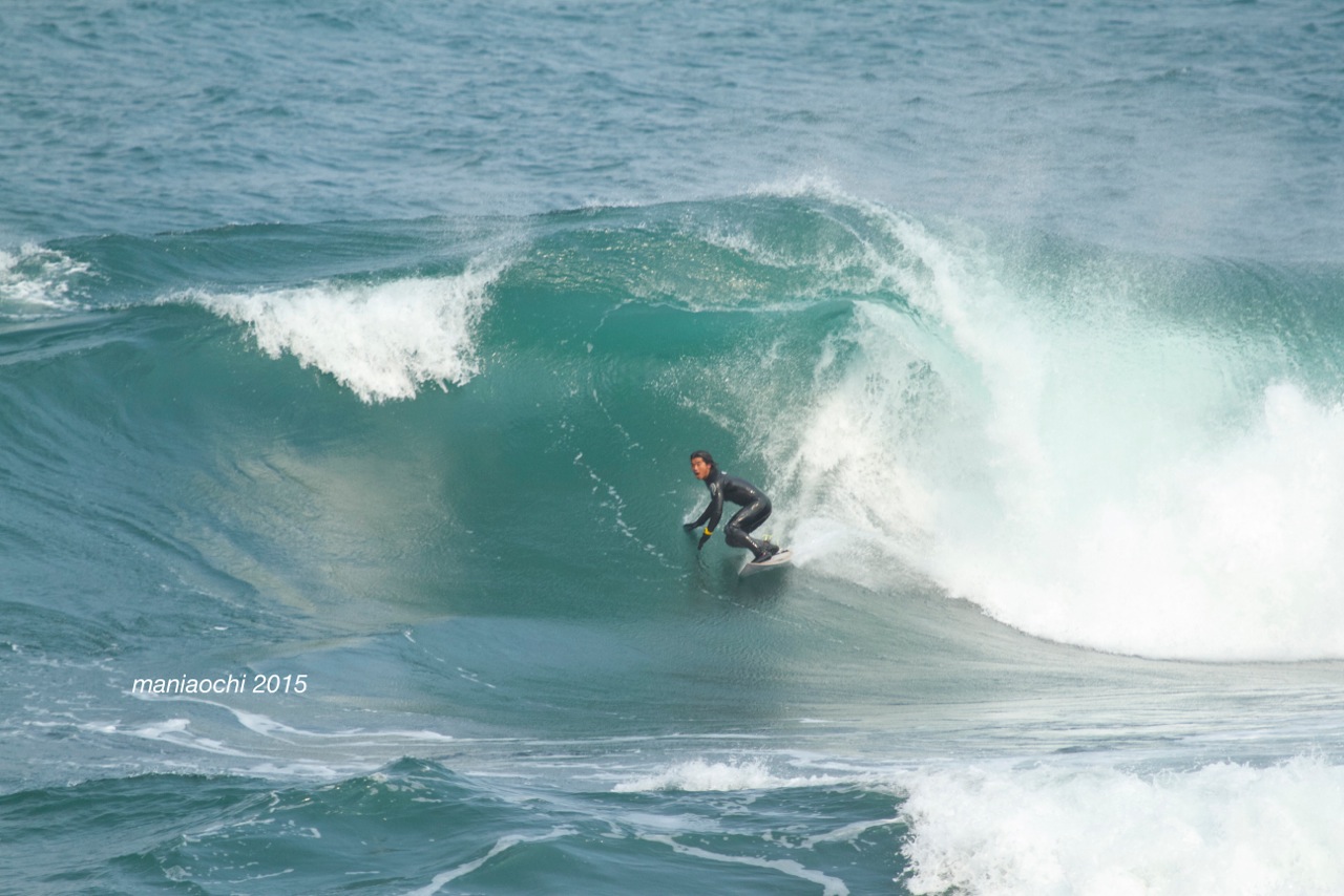 ここの波特有の底掘れする恐ろしい波に猛チャージを魅せ、