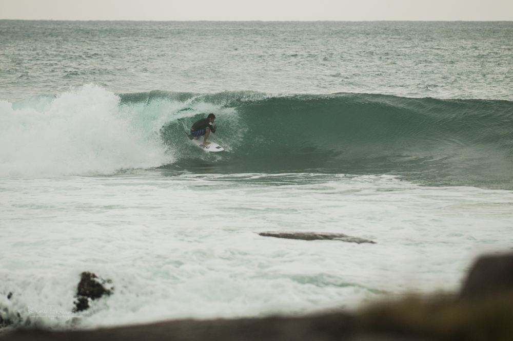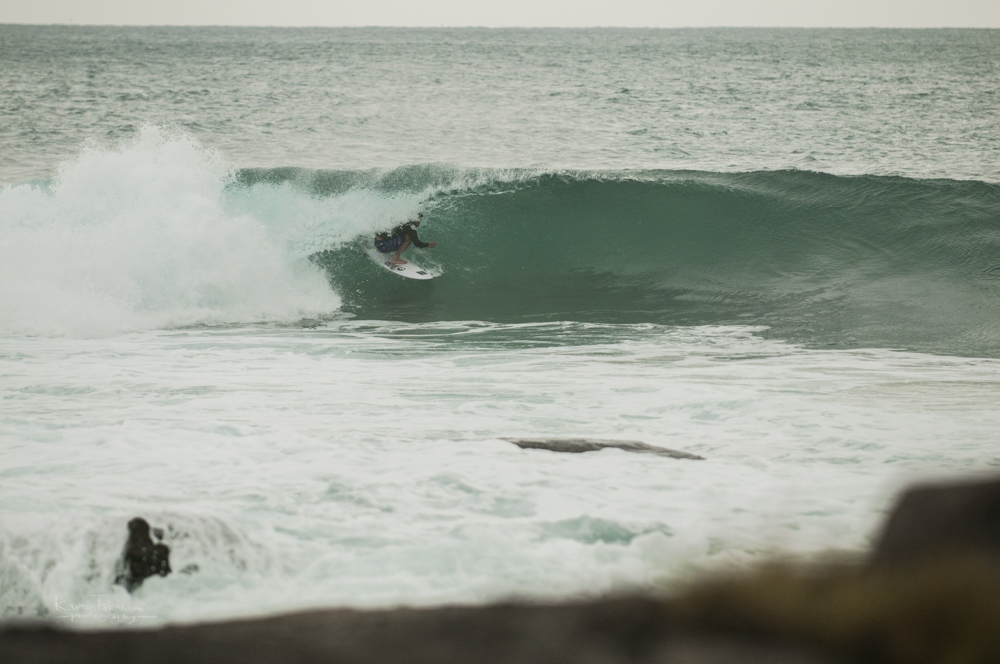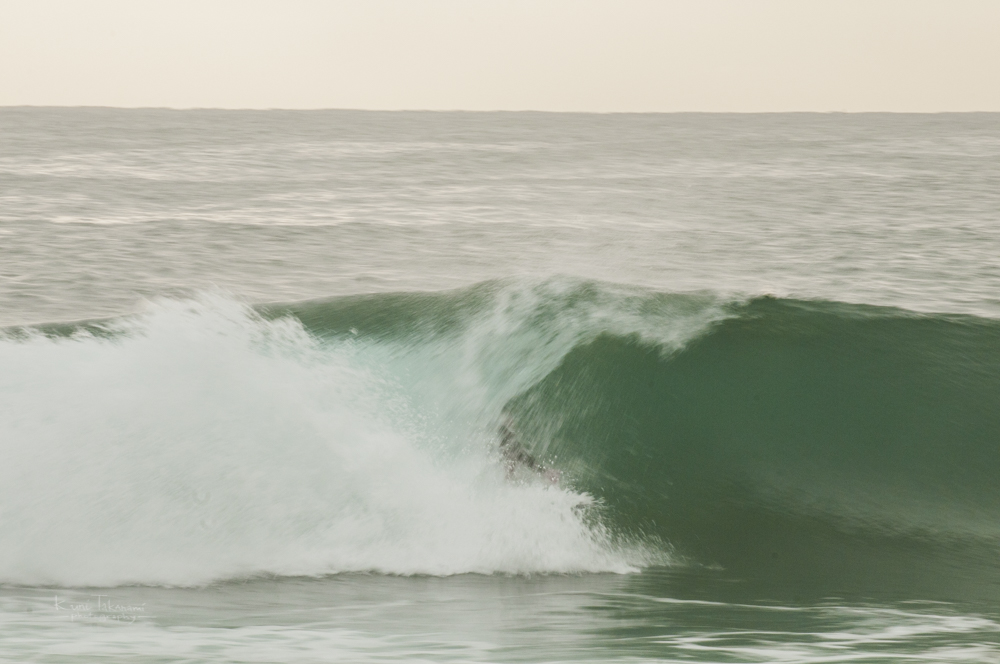 「アンゴーリーと違ってここはチューブだし浅いけど、こういうところで入れば自分の自信になるよ。ピークからは危ないから、ショルダーから乗れば大丈夫。一緒に行こう!」