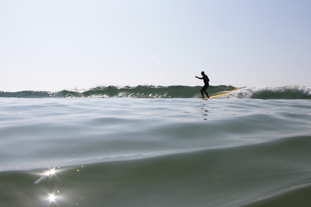 小さいが面の綺麗な波を楽しんでいた。