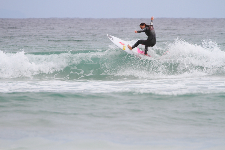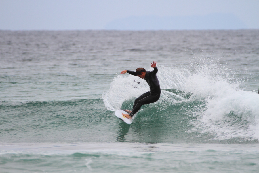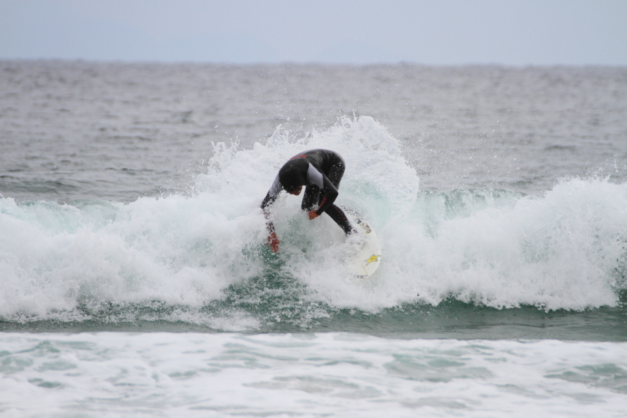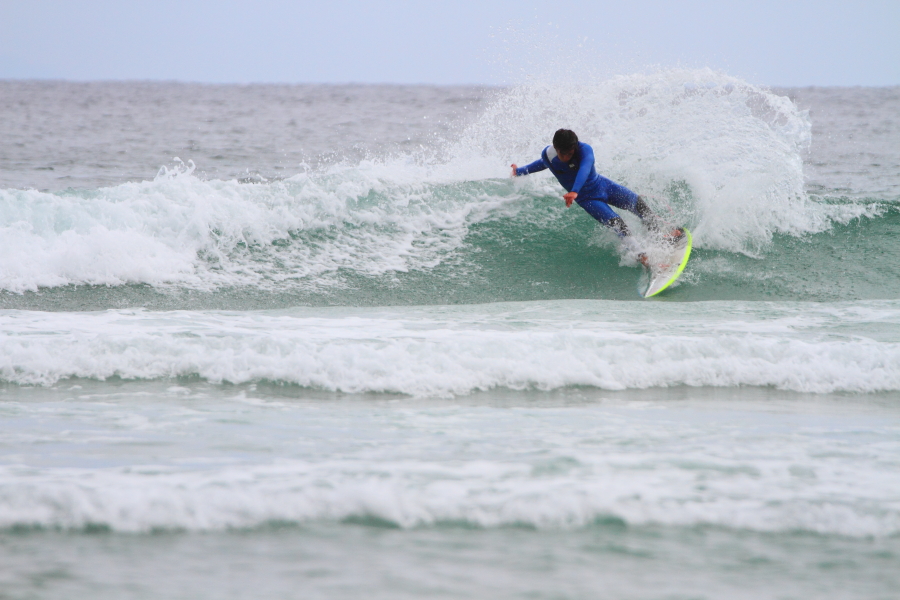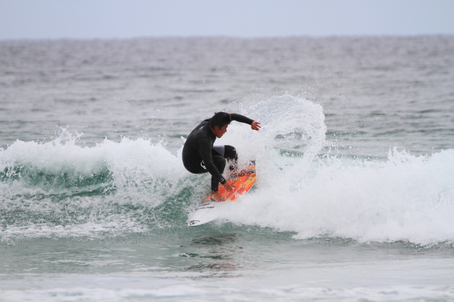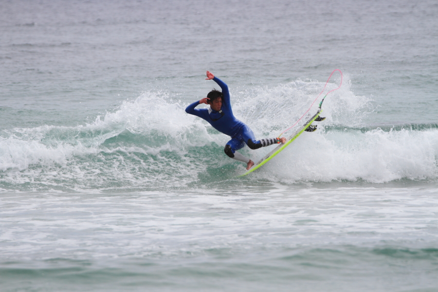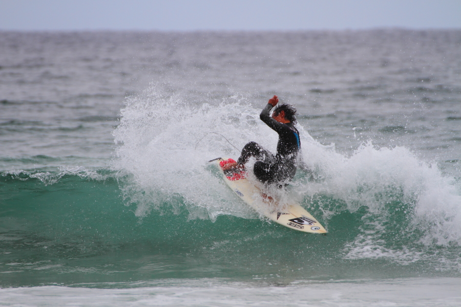 持ち前のパワフルなサーフィンで大きなスプレーをあげていた。