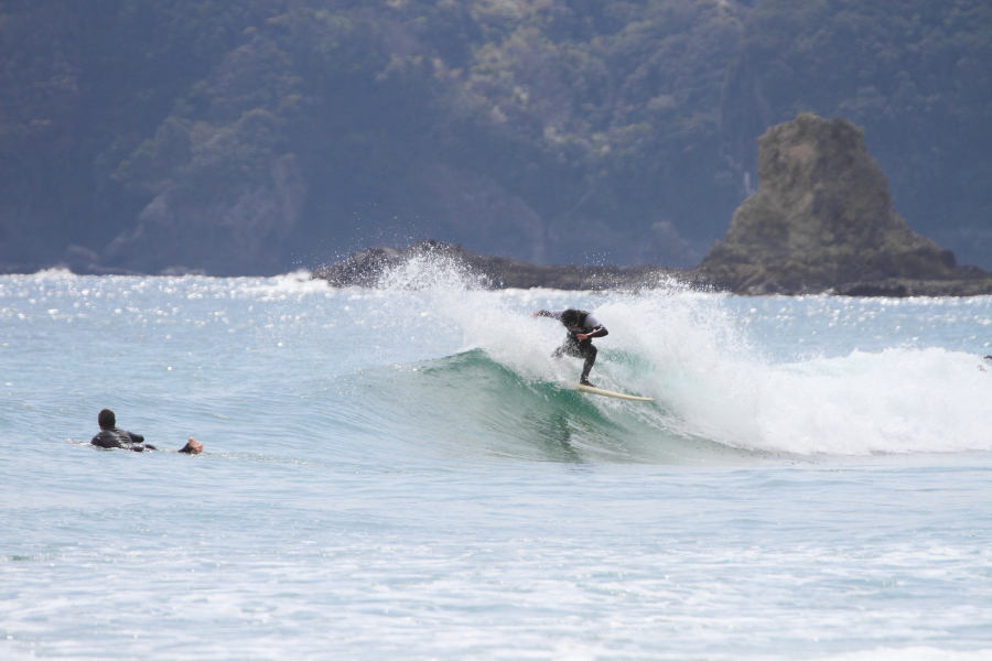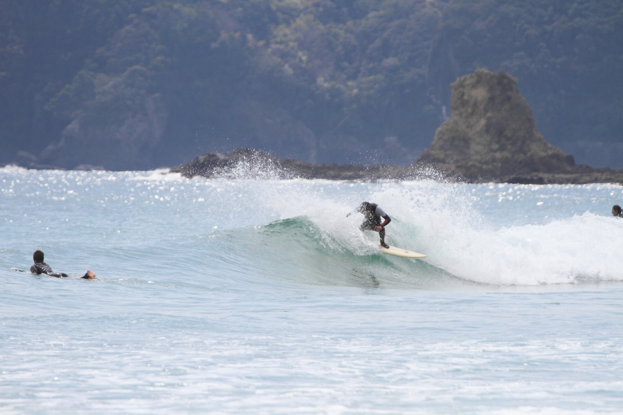 ほぼ無風の形のいいライダブルな波に恵まれ、