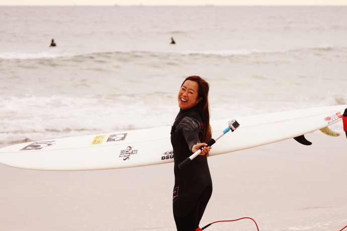最近はロングボードにもハマっているすみちゃんこと福島寿実子。