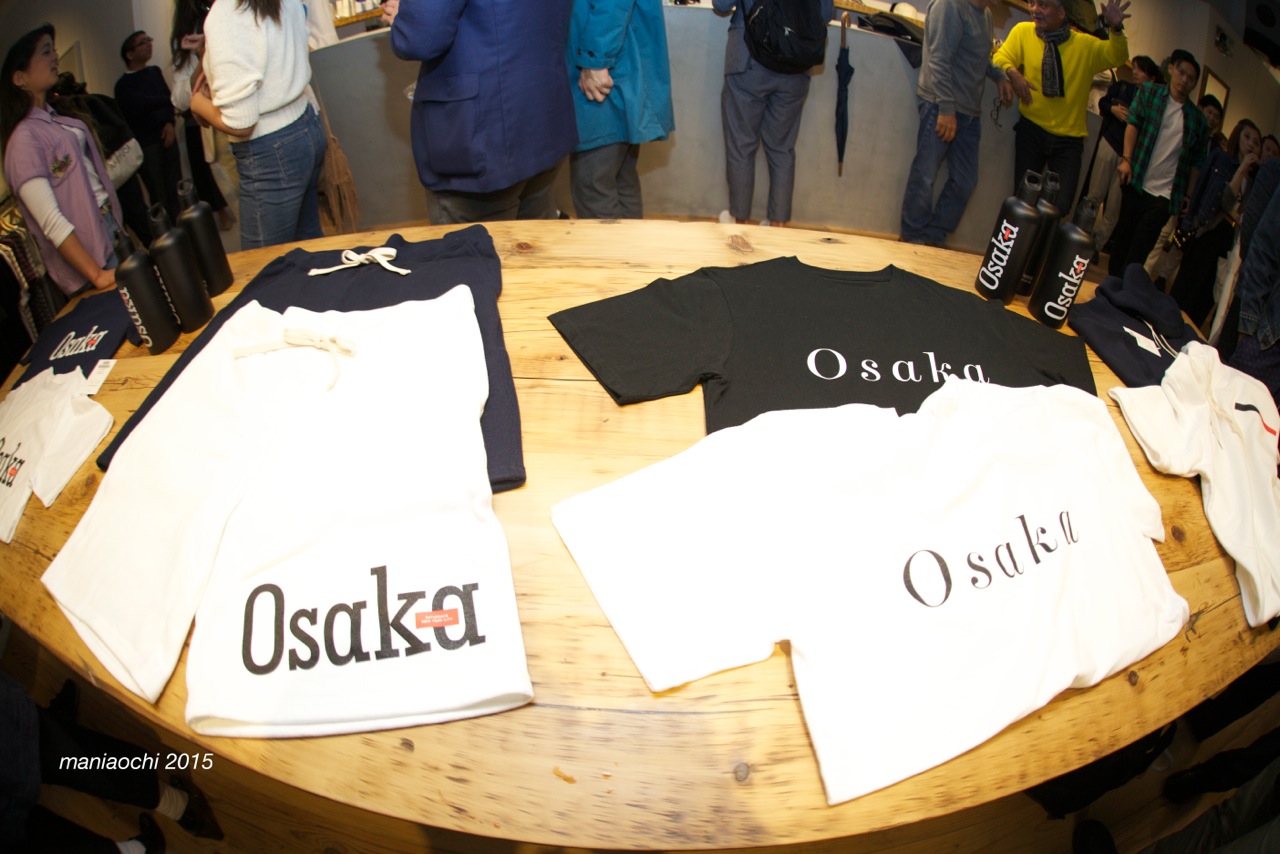 OSAKAロゴが入ったTシャツやスウェットなど、ここだけのアイテム類。