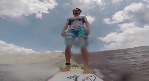 後半に向かってからは友達も登場して1本の波に2人乗りまで登場しつつ