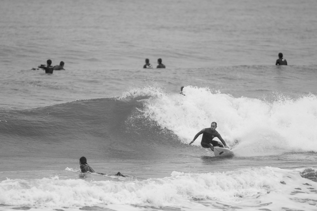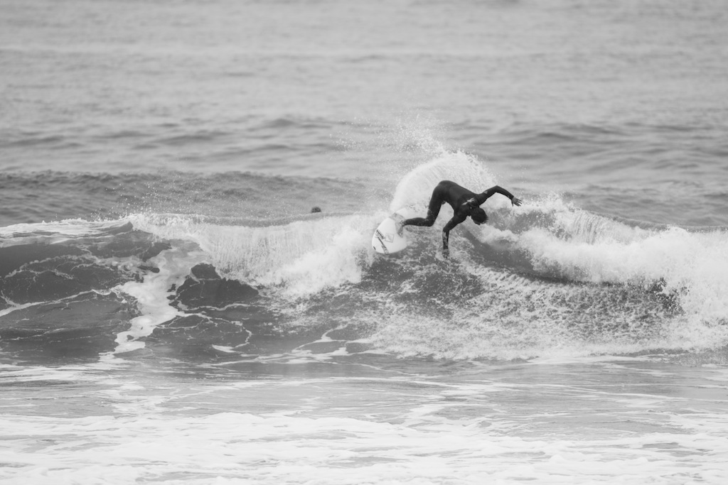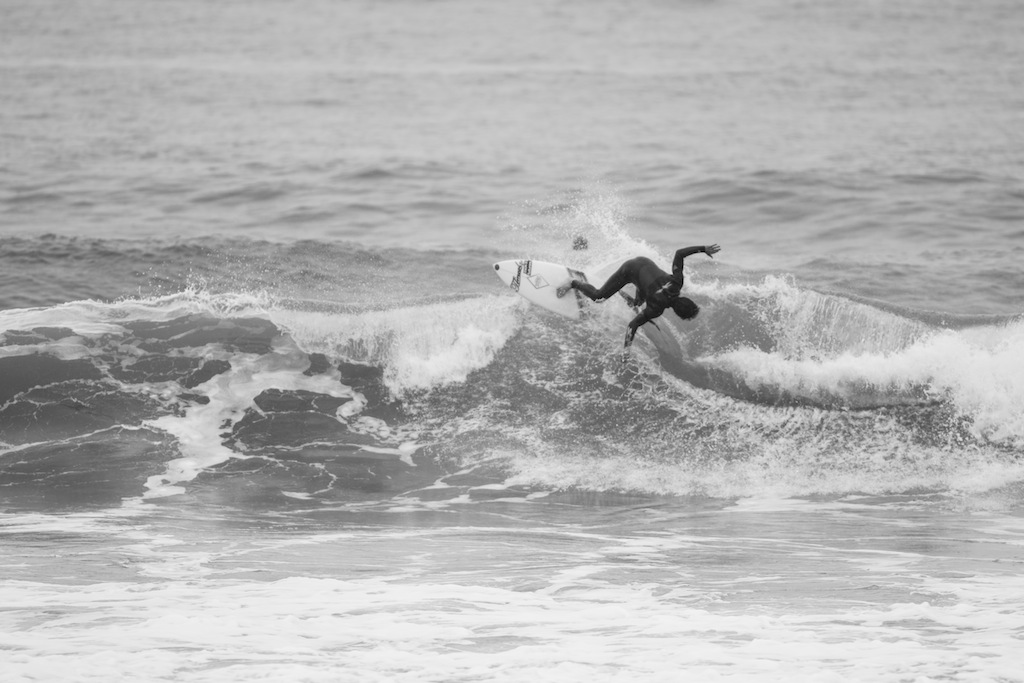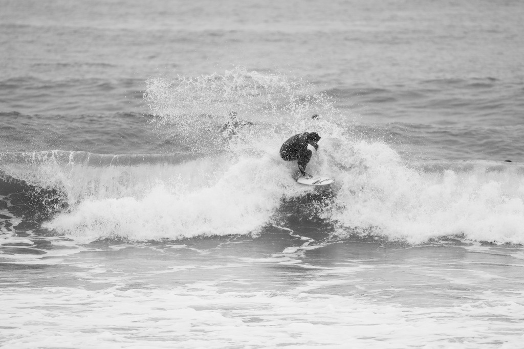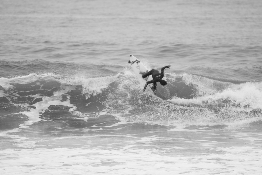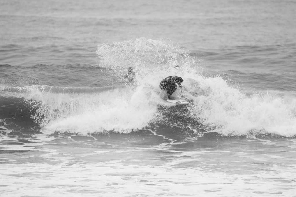 The winds change and a trip down to the beach shows perfect shaped waves. A dark and rainy day has me put under some beachside shelter to shoot the action. The boys are ripping!