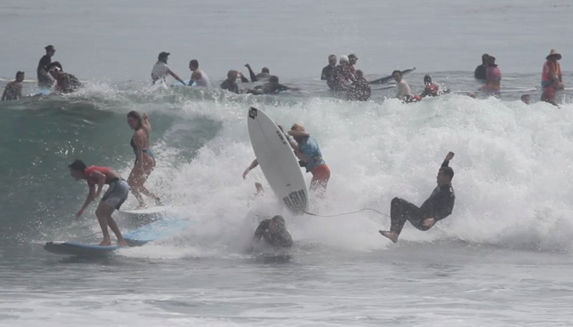 これだけ多くの仮装したサーファーたちが一気にピークに押し寄せ、