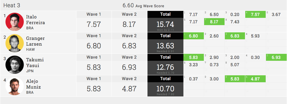 Granger Larsenが3本目の波で6.83ptをスコアすると