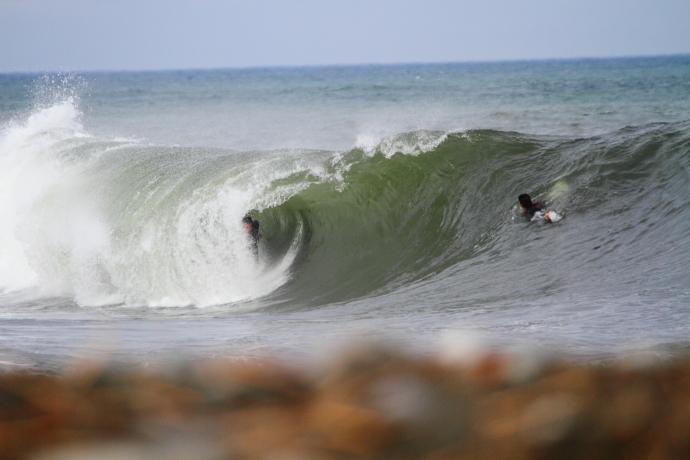 2名のチューブマスター2名が海に飛び込んでいく。