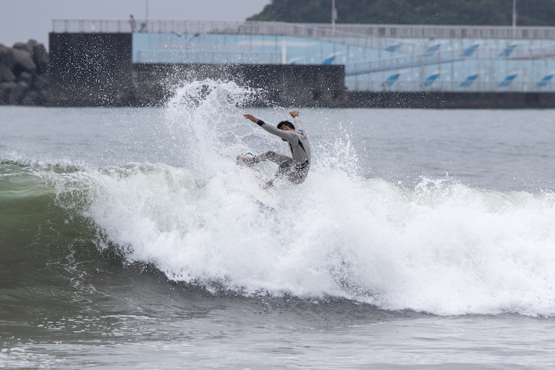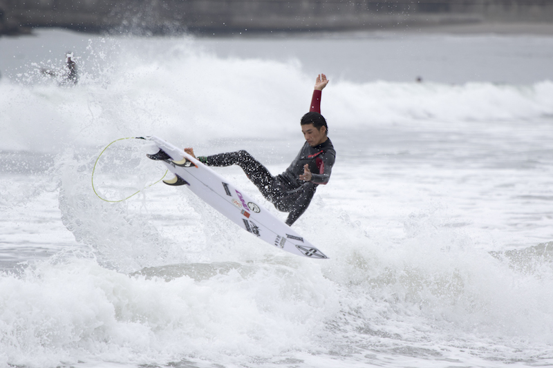 Always prepared for any conditions, the Kitaura brothers find a few waves in the busy lineup. Hyota getting tricky on the inside, Kazuki throwing up some spray, and oldest brother Yuya getting vertical on a rare left.