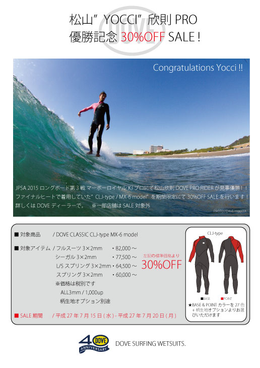 DOVE surfing wetsuitsプロライダー松山”YOCCI”欣則が