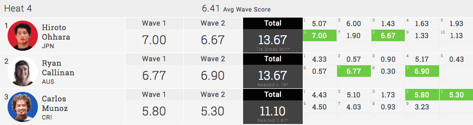 ヒート内のハイエストスコアとなる7.00ptを持っていた大原洋人が