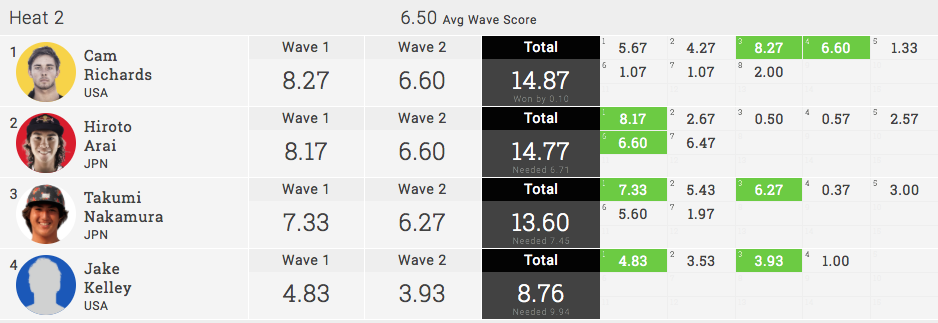 また、順調に勝ち上がっているカノア五十嵐は