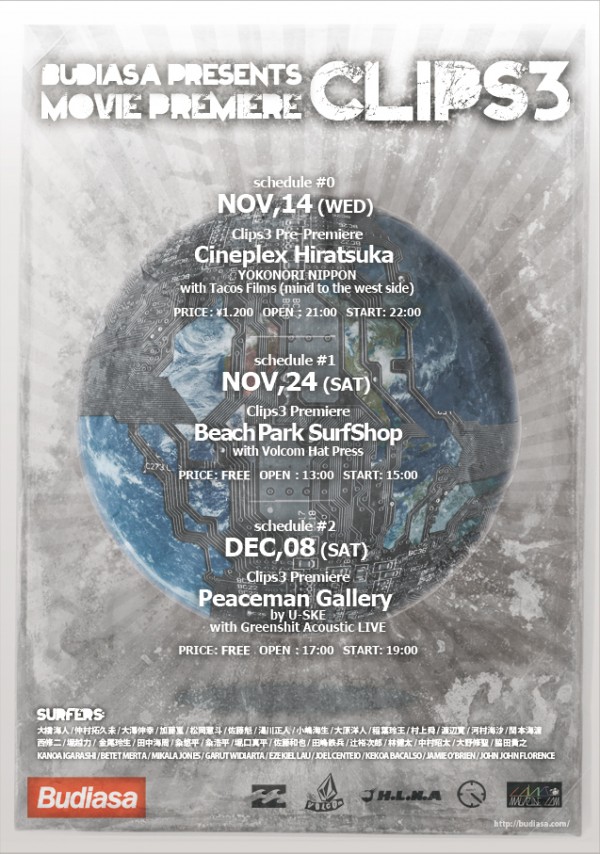 今月12日に発売されるBudiasaのDVD『CLIPS3』のプレミア#2が今週の土曜日、平塚市にある写心家U-SKE氏のギャラリー”Peaceman Gallery”にて行われる!