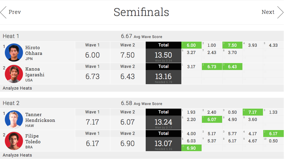 世界中が注目した日本人サーファー同士のセミファイナルは、