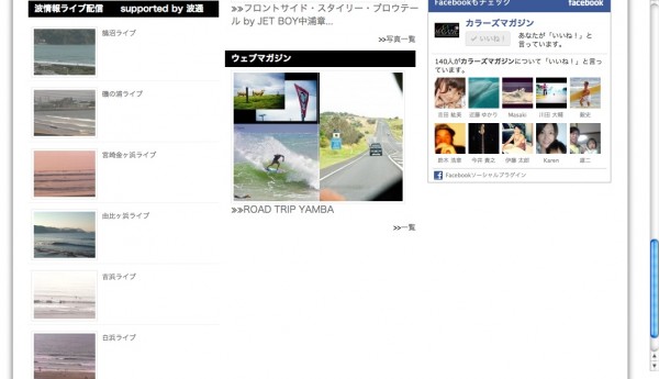 ホーム ムーブメント サーフィン-ムーブメント colorsmagのトップ画面下部に「鵠沼、磯ノ浦、宮崎金ケ浜、由比ケ浜、吉浜、伊豆白浜」の無料ライブカメラを設置! supported by 波通 ムーブメントサーフィン-ムーブメント colorsmagのトップ画面下部に「鵠沼、磯ノ浦、宮崎金ケ浜、由比ケ浜、吉浜、伊豆白浜」の無料ライブカメラを設置! supported by 波通 By yoge - 2011年10月29日 Text by colorsmagyoge. 波情報の波通の協力により、 colorsmagのトップ画面の左列最下部に 「鵠沼、磯ノ浦、宮崎金ケ浜、由比ケ浜、吉浜、伊豆白浜」 の無料ライブカメラを設置! i-phoneなどのスマートフォンからでも閲覧可能となっている 無料ライブカメラなのでぜひご利用ください! ※初めてご利用の場合は、メールアドレス記入、 パスワード設定などの簡単な波通無料会員登録が必要となります。