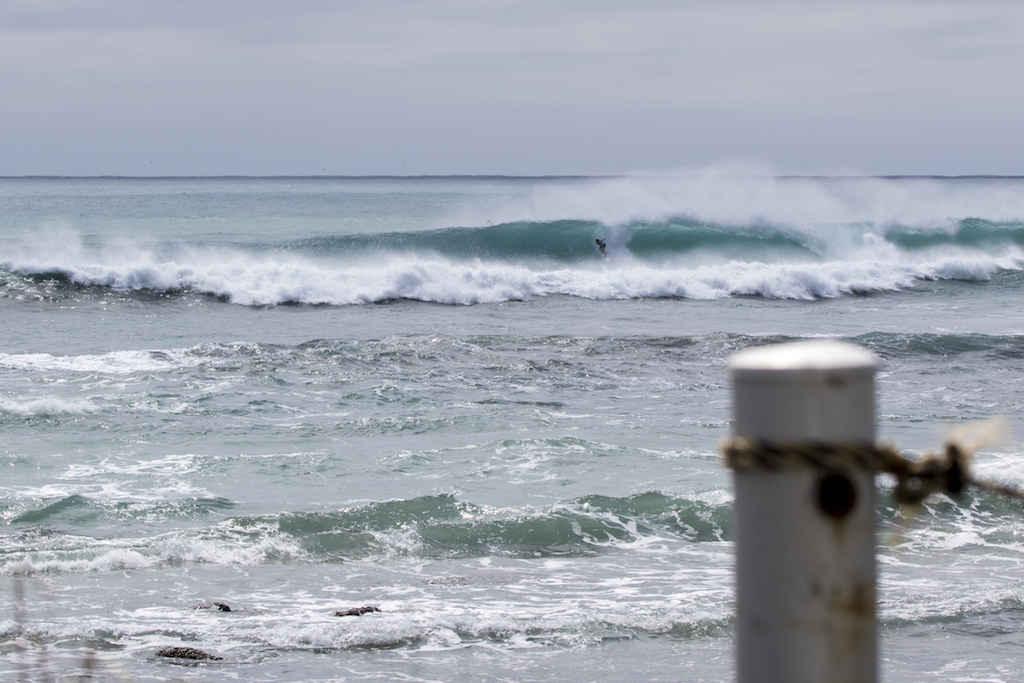 The rights start to open up as the tide drains out. Yukio finds his lineup, takes off deep, and pulls into a crystal blue tube.