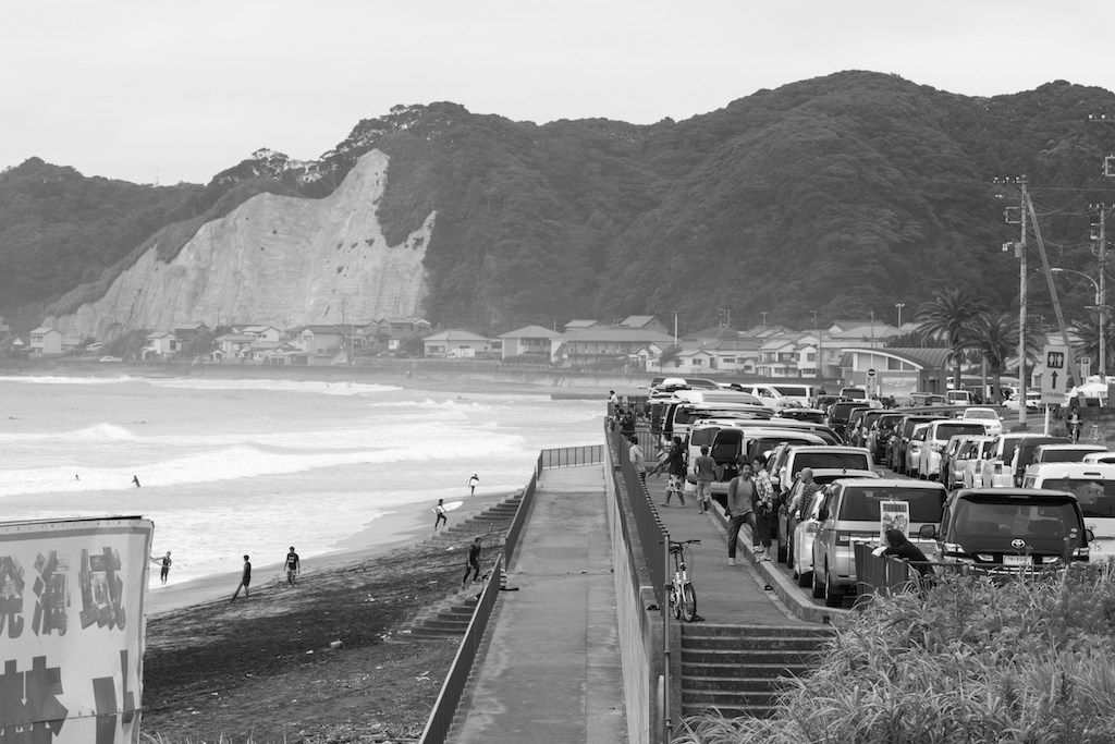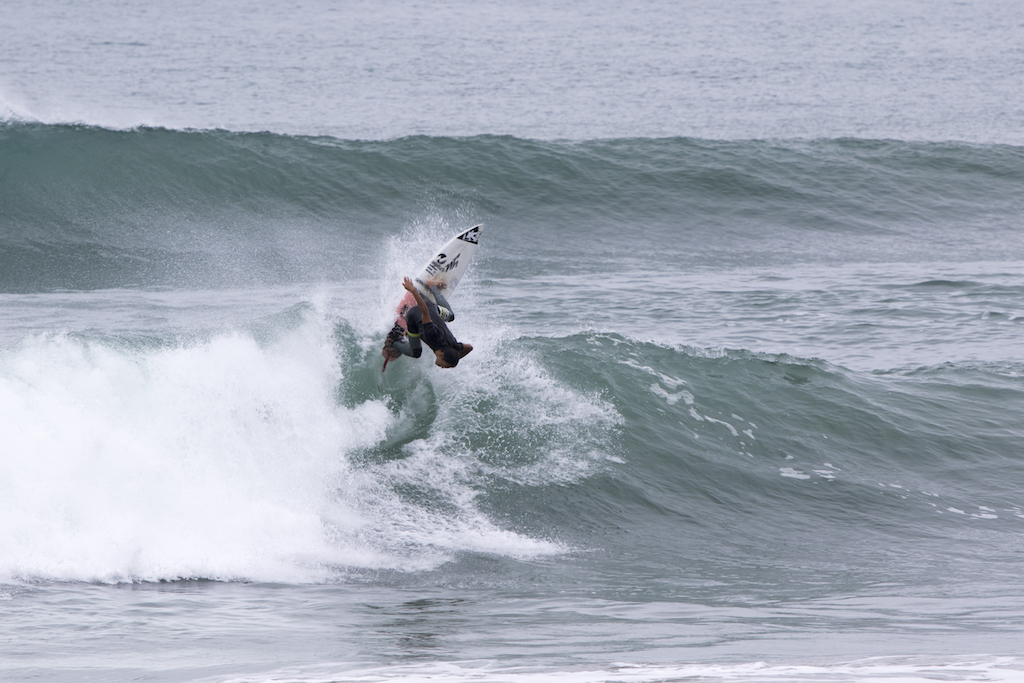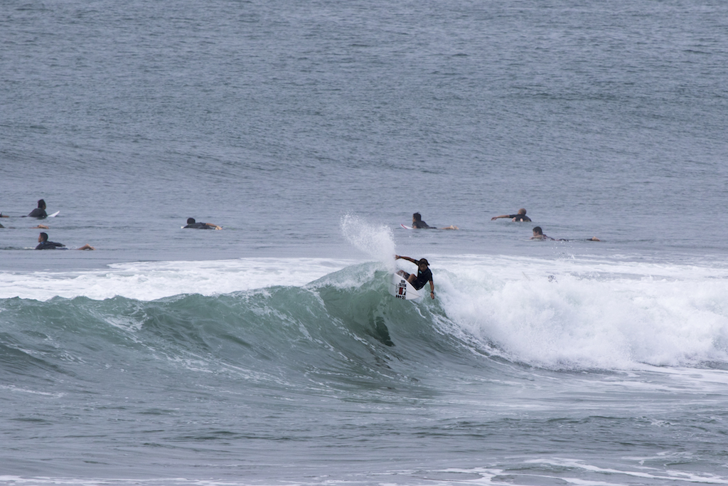 Just below the car park, Keitaro Fujinuma takes control of the busy line up with a series of forehand snaps in the decent sized surf.