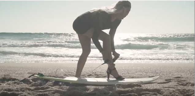 Maud Le Carが、ハイヒールを履いてサーフィンにチャレンジ!
