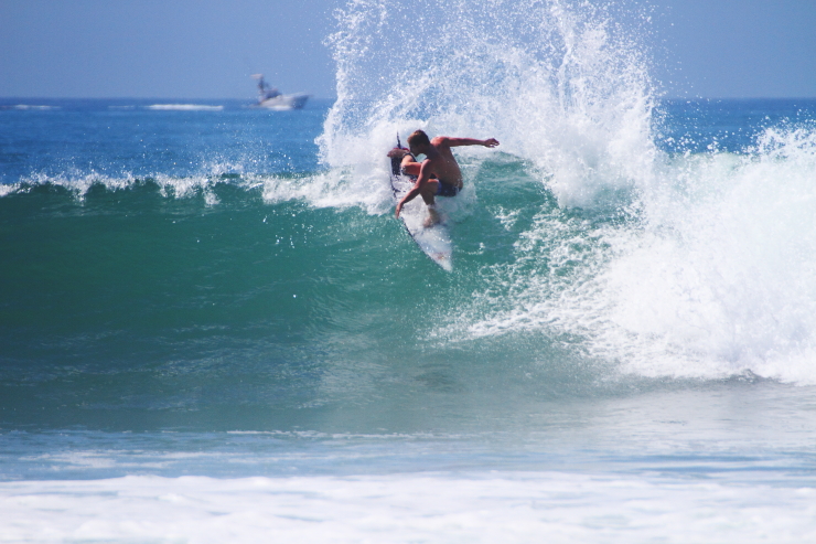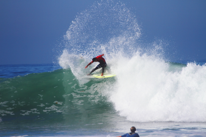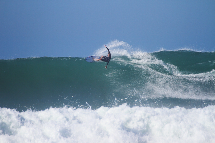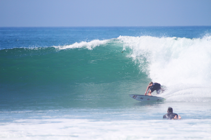 このセッションでは海に入って数本目に掴んだセットの波で見事なビッグカーヴィングからの深いレイバックをメイクしてみせた大原洋人。