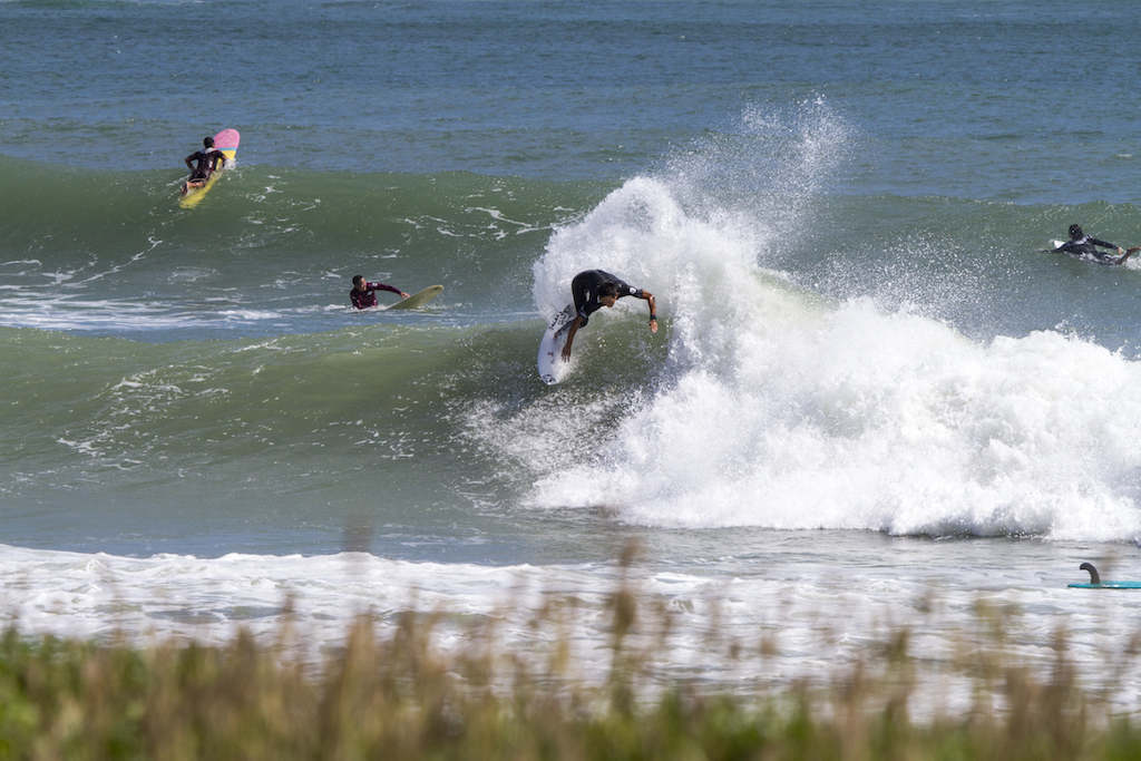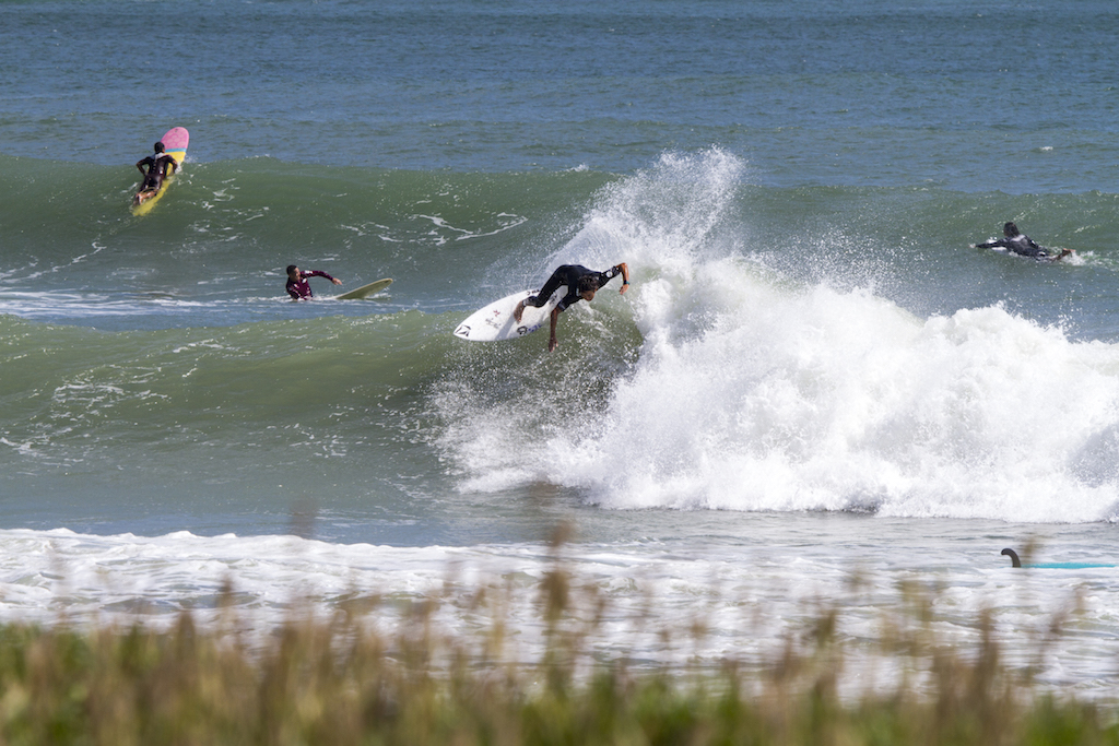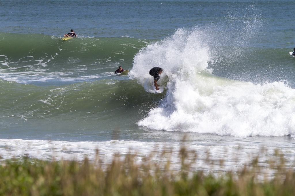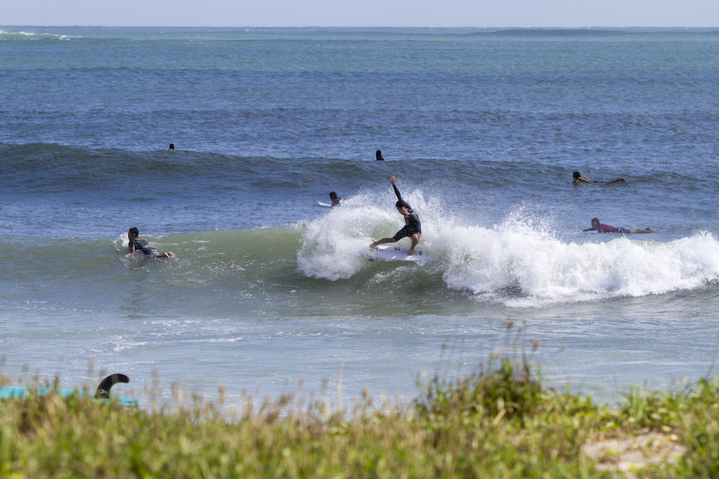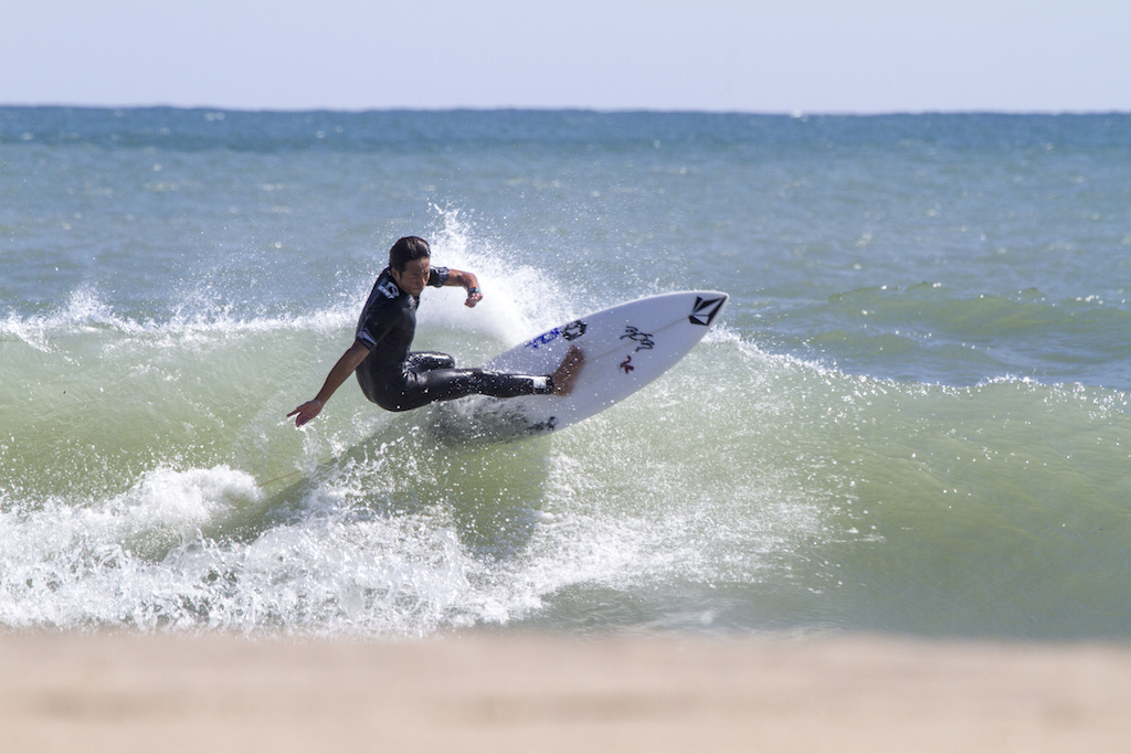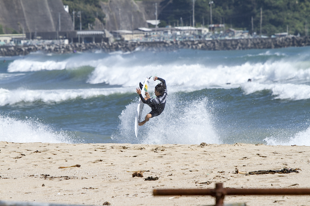 A short drive north from my morning session and I find Akira Jet Nakaura and Yujiro Tsuji. The wind is perfect and surf is hitting the banks well. These two are super stylish surfers, and they put on surf clinic for the onlookers. These are the days when surf photography is fun.