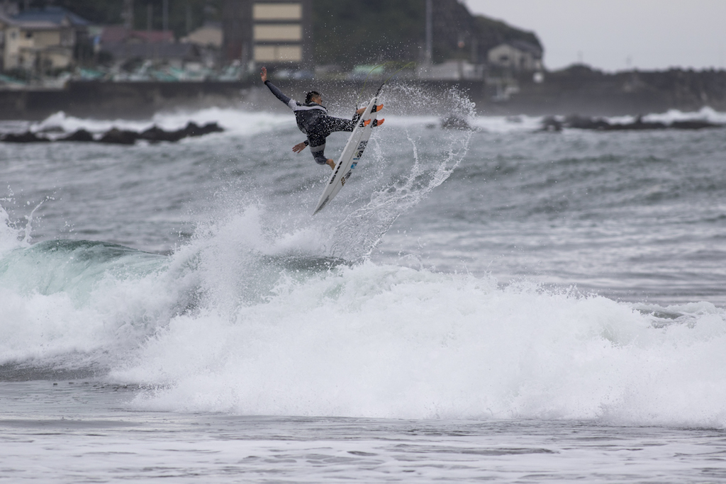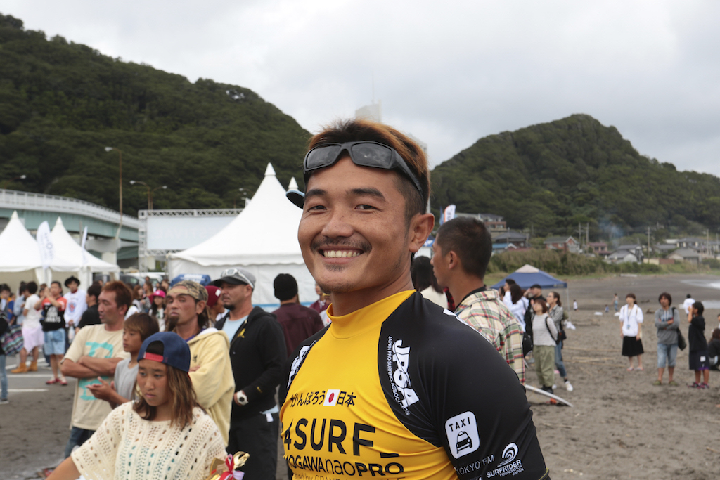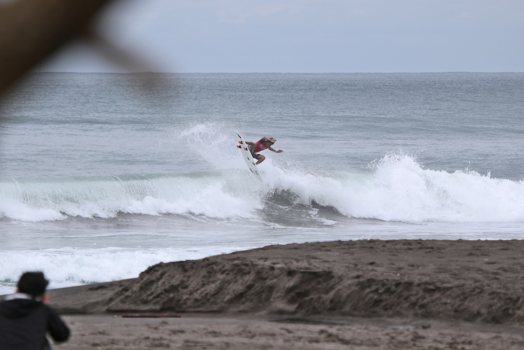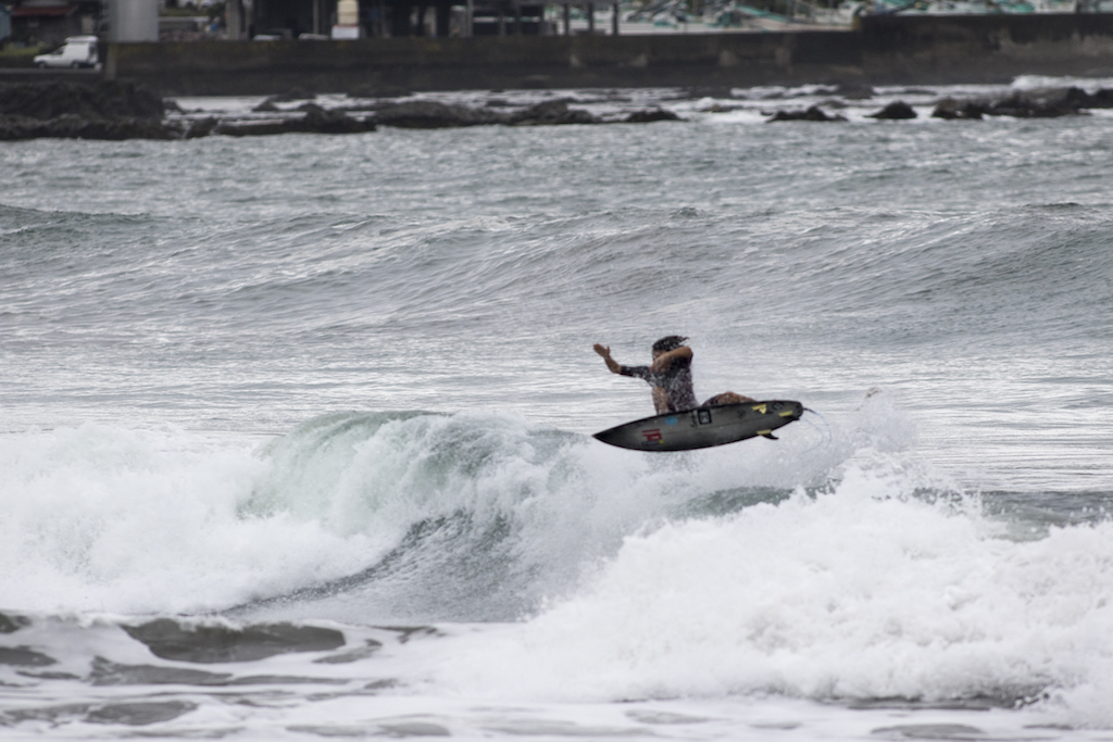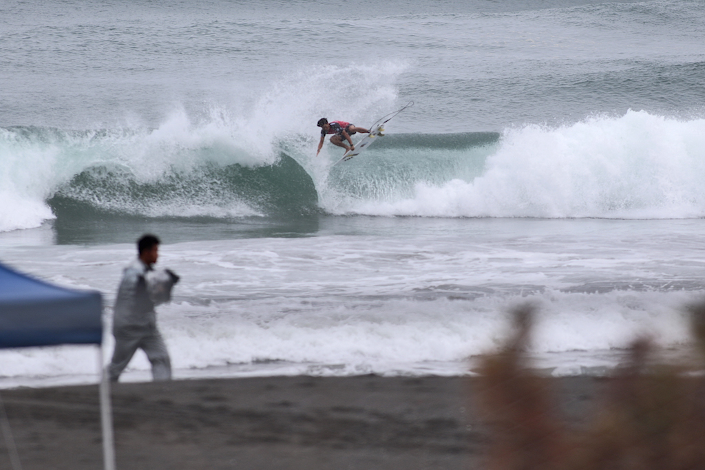Although an earlier round exit, Ryota Matsushima sticks around to enjoy the solid swell in Kamogawa.