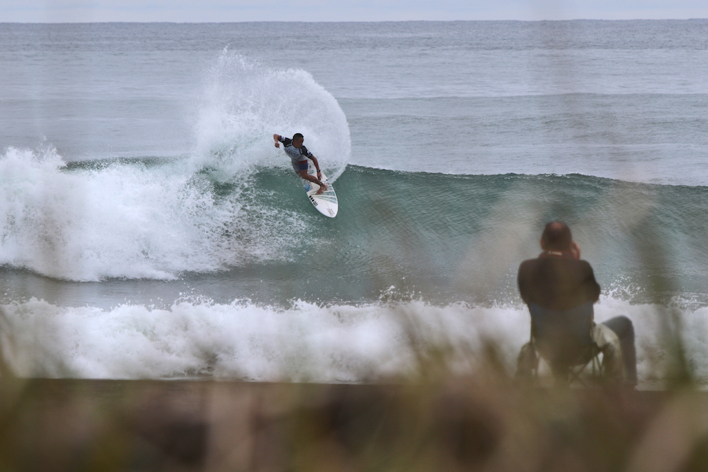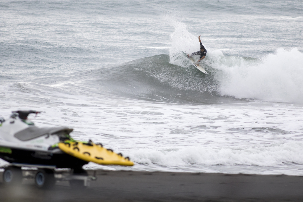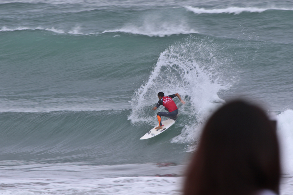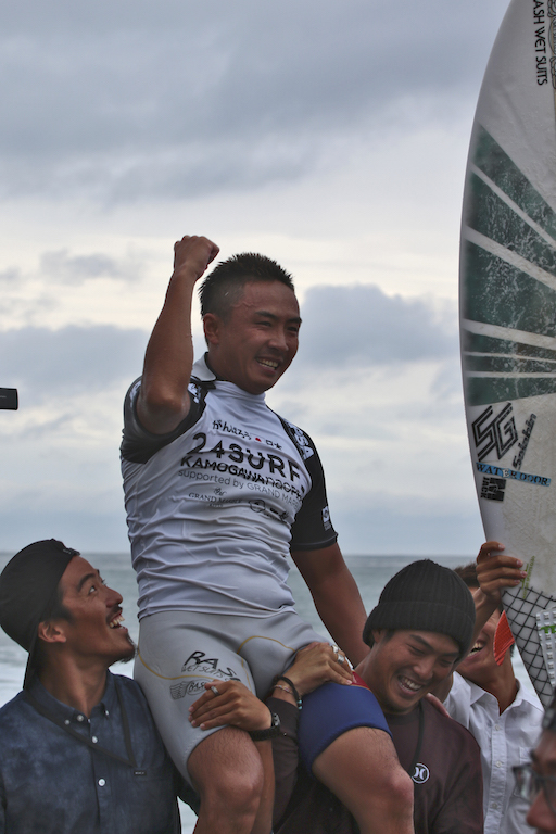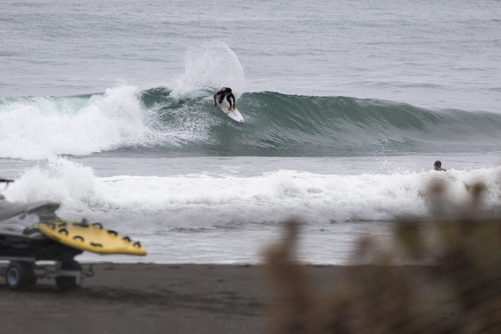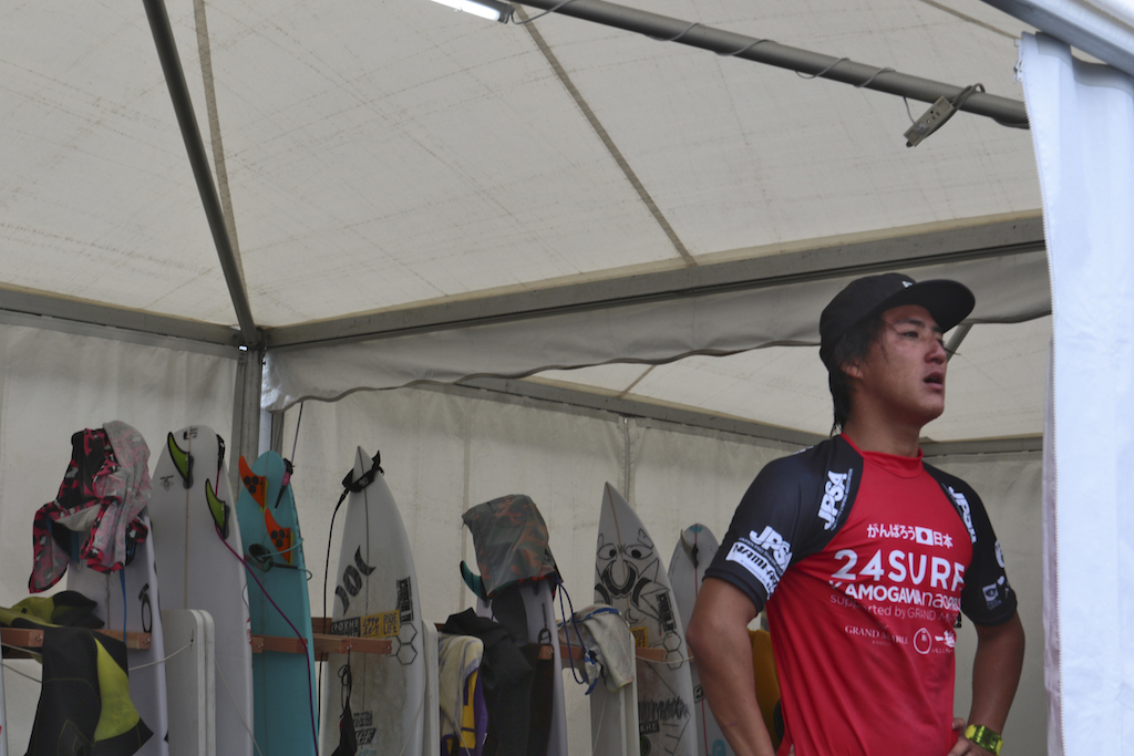 Although an earlier round exit, Ryota Matsushima sticks around to enjoy the solid swell in Kamogawa.