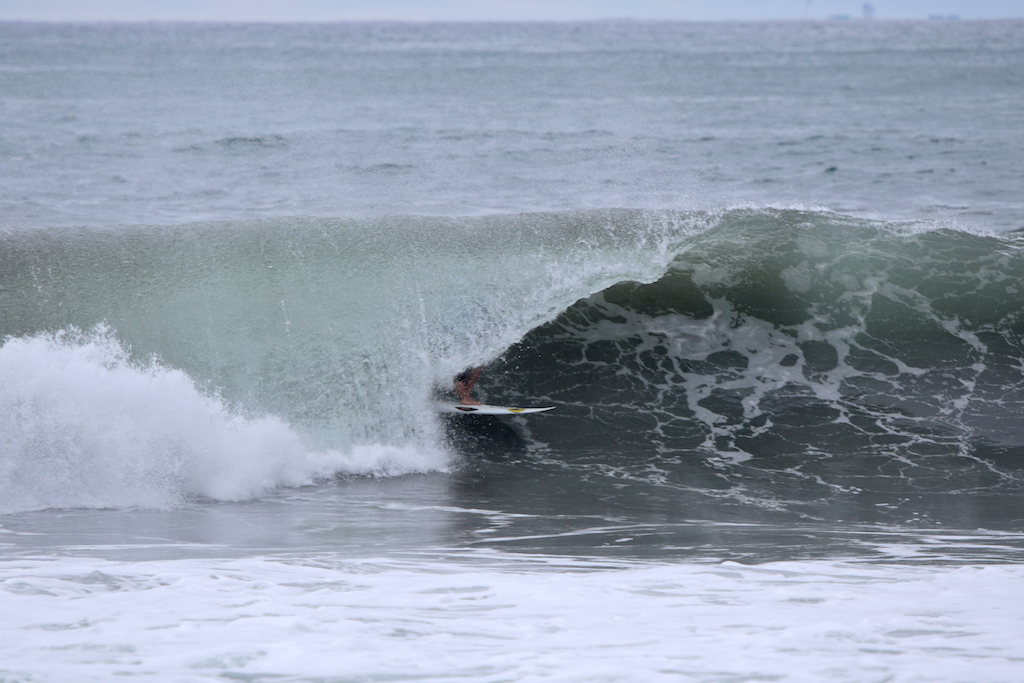 小雨が降りしきるなか頭前後の十分な波のコンディションに恵まれた
