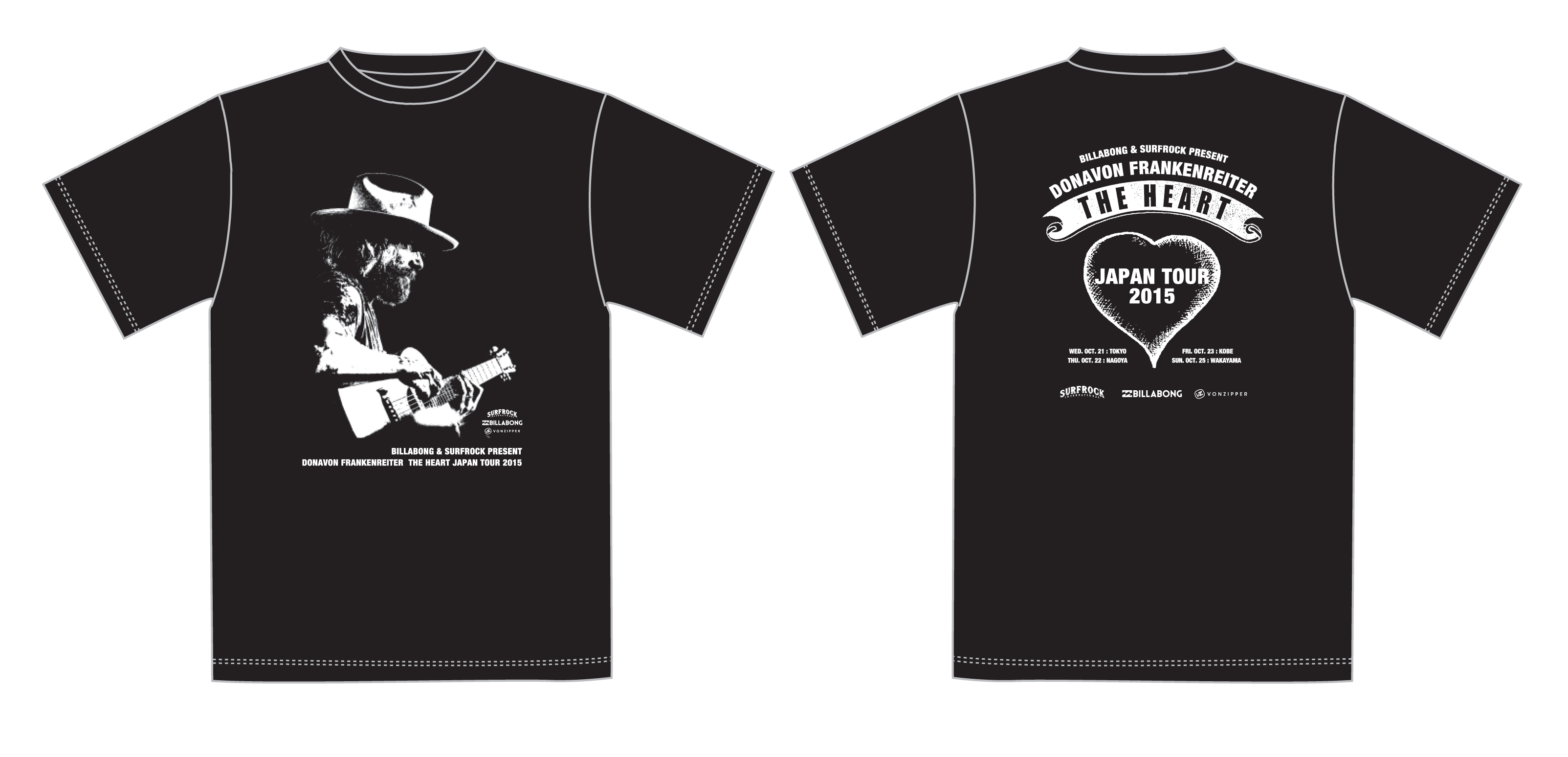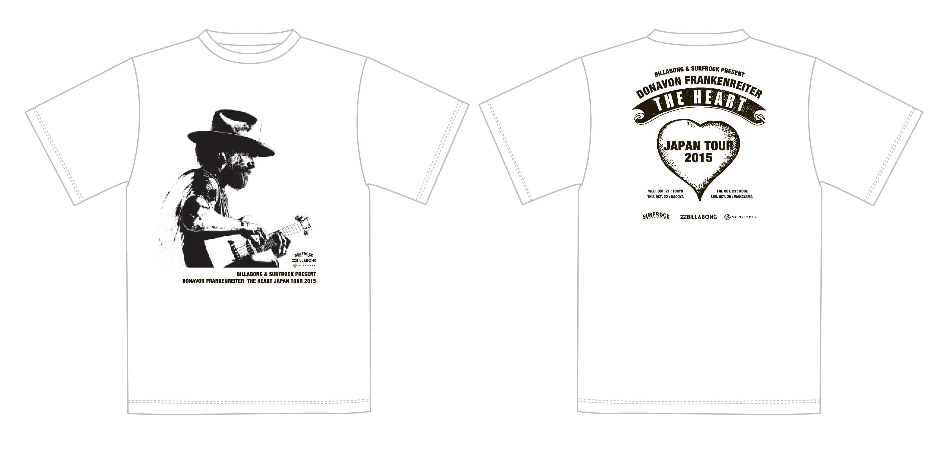ドノヴァン・フランケンレイター・ニューアルバム”THE HEART”発売来日ツアー記念、数量限定ツアー・オリジナルTシャツを会場とBillabong Store(湘南、原宿、MOZO、八尾、難波)にて販売予定!