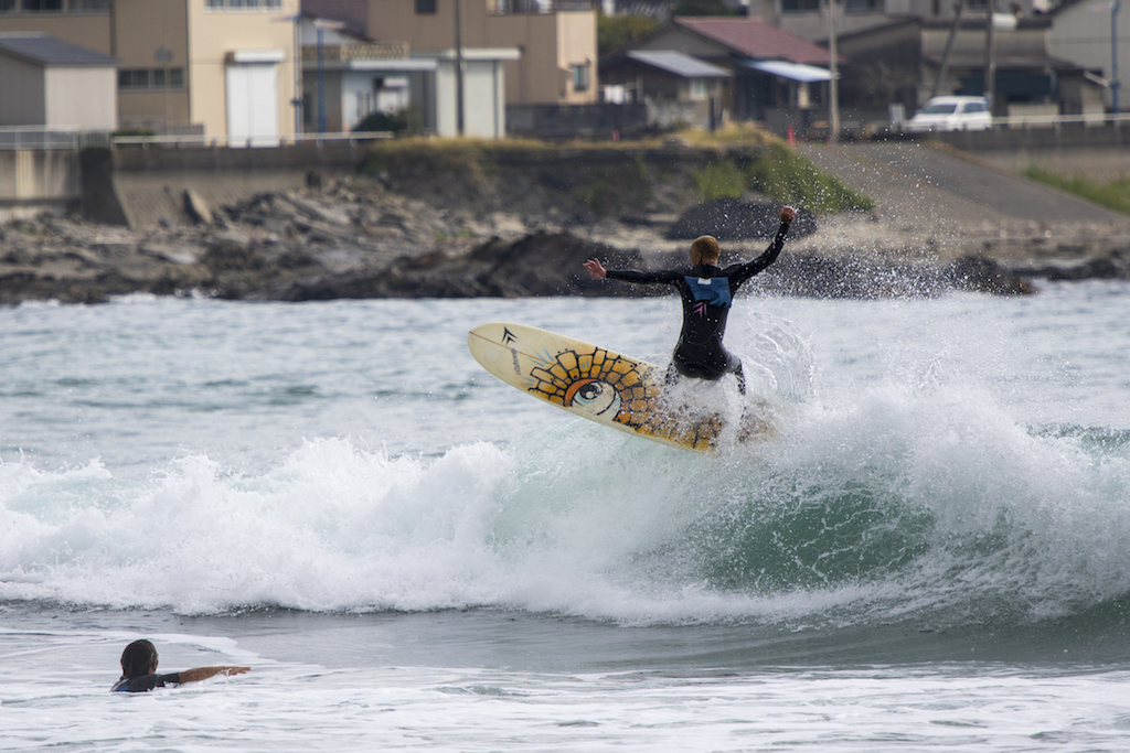 A fun looking sand bar with good shaped A frames at Maruki point brought out the best in everyone. Lots of ripping and smiles from visiting surfers and local professionals, the action was hot!! Check it out! Surfers: Kyoko Namiki, Miho Ihara, Takehiko Sakuma, Shohei Akimoto, Testunori Uehara, Tsutomu Ogino, Hiroki Hayakawa, Yukio Ogawa, Naohisa Ogawa.