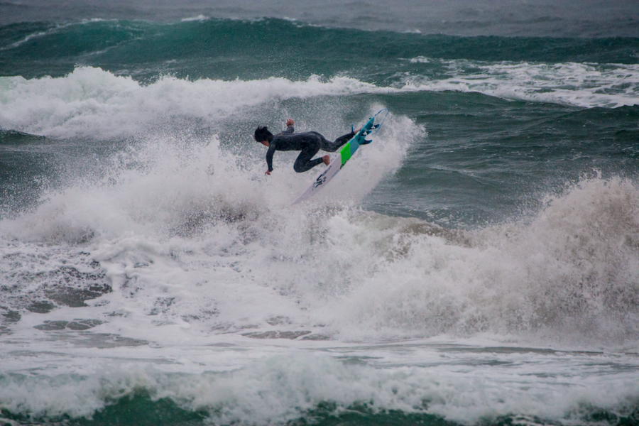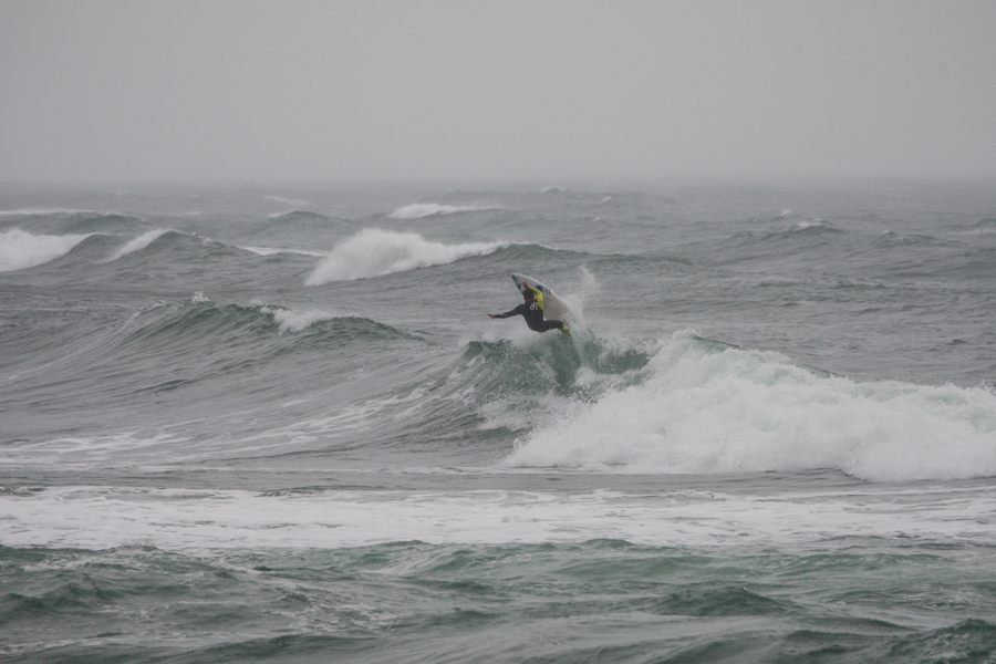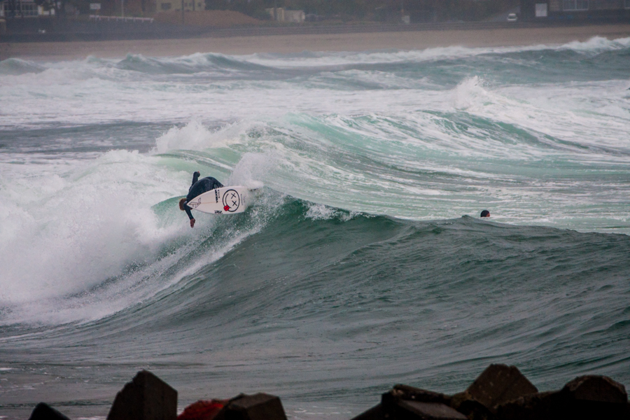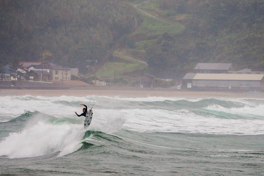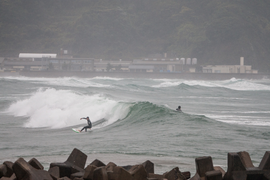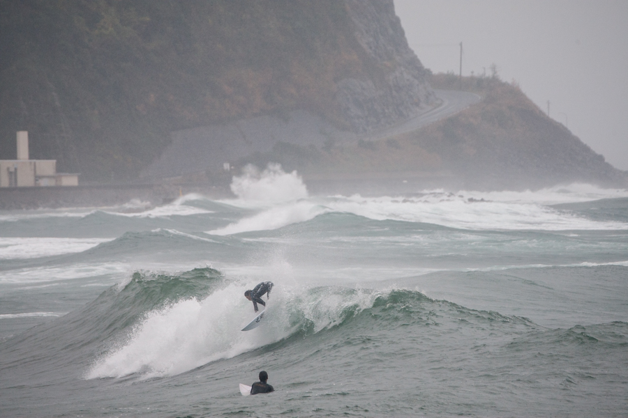 あいにくの雨とオンショアというバッドコンディションのなか、