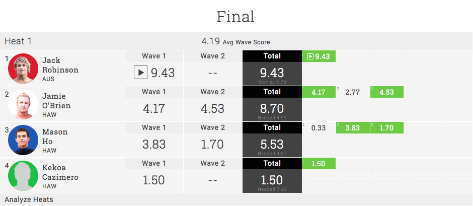 ファイナルはJamie O’Brien(HAW)、Mason Ho(HAW)、