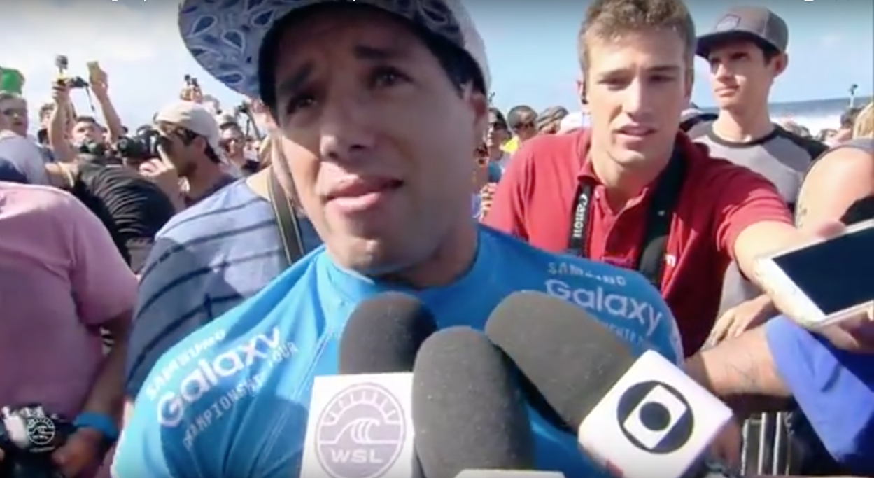 「そして何よりも、自分が貧しかった幼い頃に、なけなしの$7で最初のサーフボードを自分に買い与えてくれた兄のAngelo de Souzaにこのワールドタイトルを捧げたいです。このワールドタイトルはすべてあのとき兄が買ってくれた$7のサーフボードのおかげです」