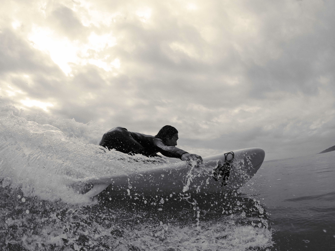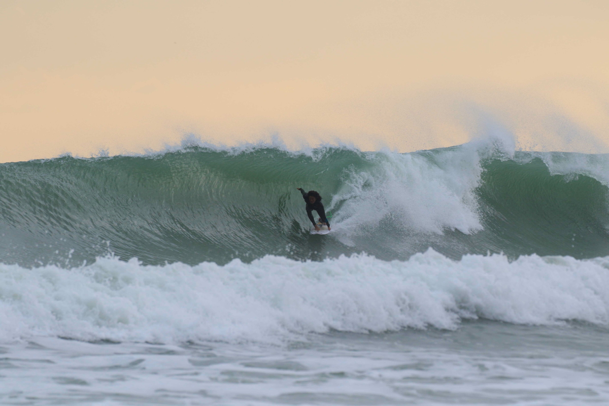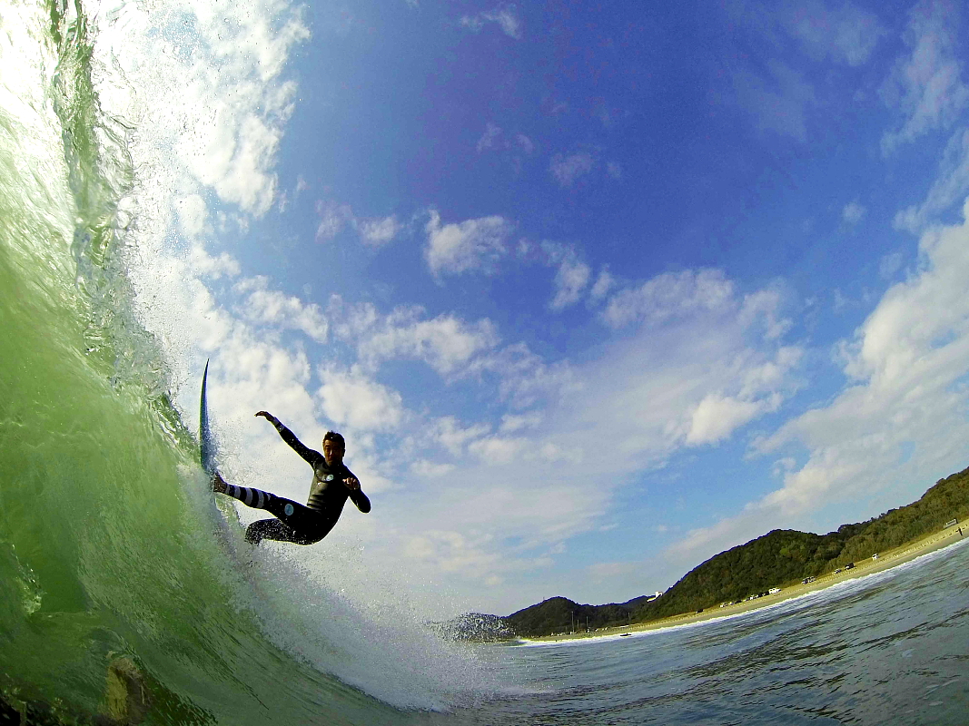 伊良湖エリアにおいてロングボードでバレルライディングさせたら