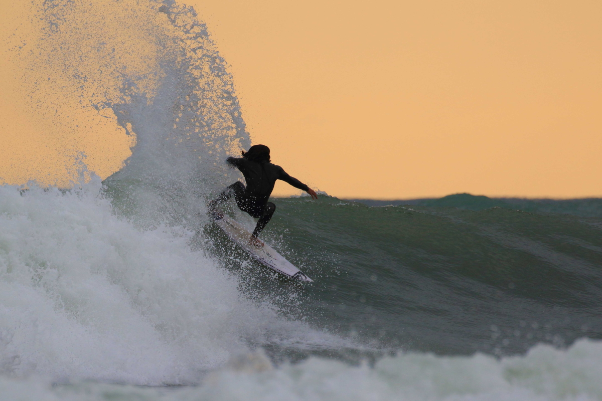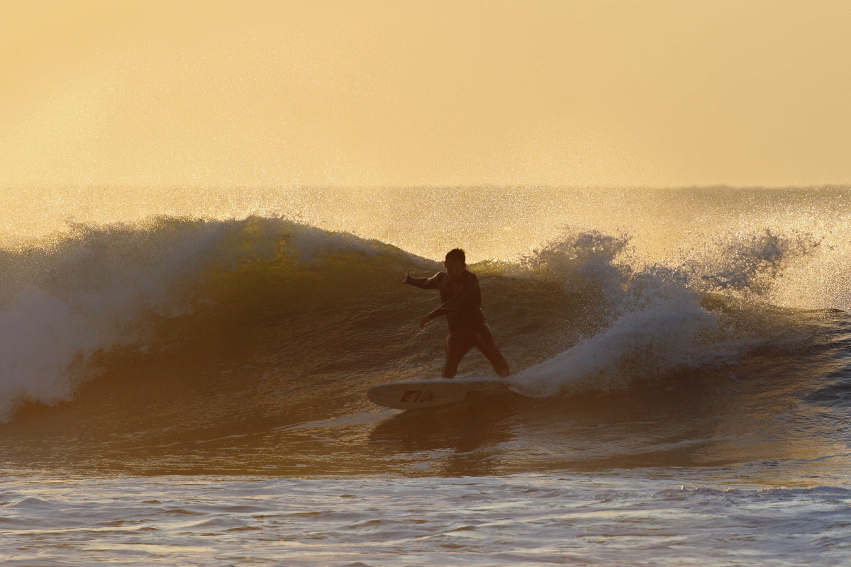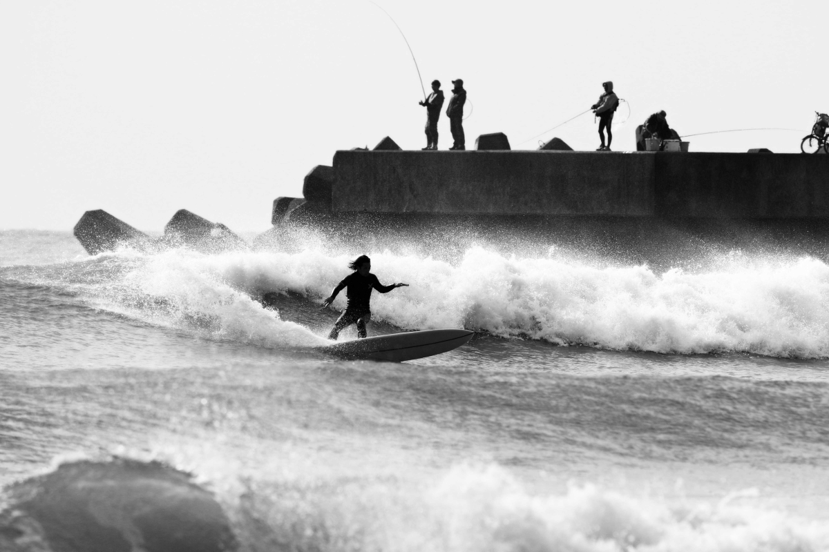 その日1番の波をクルーズするレジェンドサーファー武藤さん.