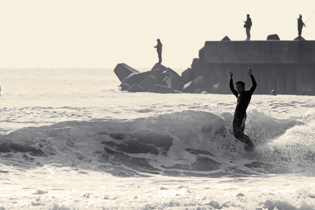 スタイリッシュなサーフィンをするレジェンドサーファー岡田さん。