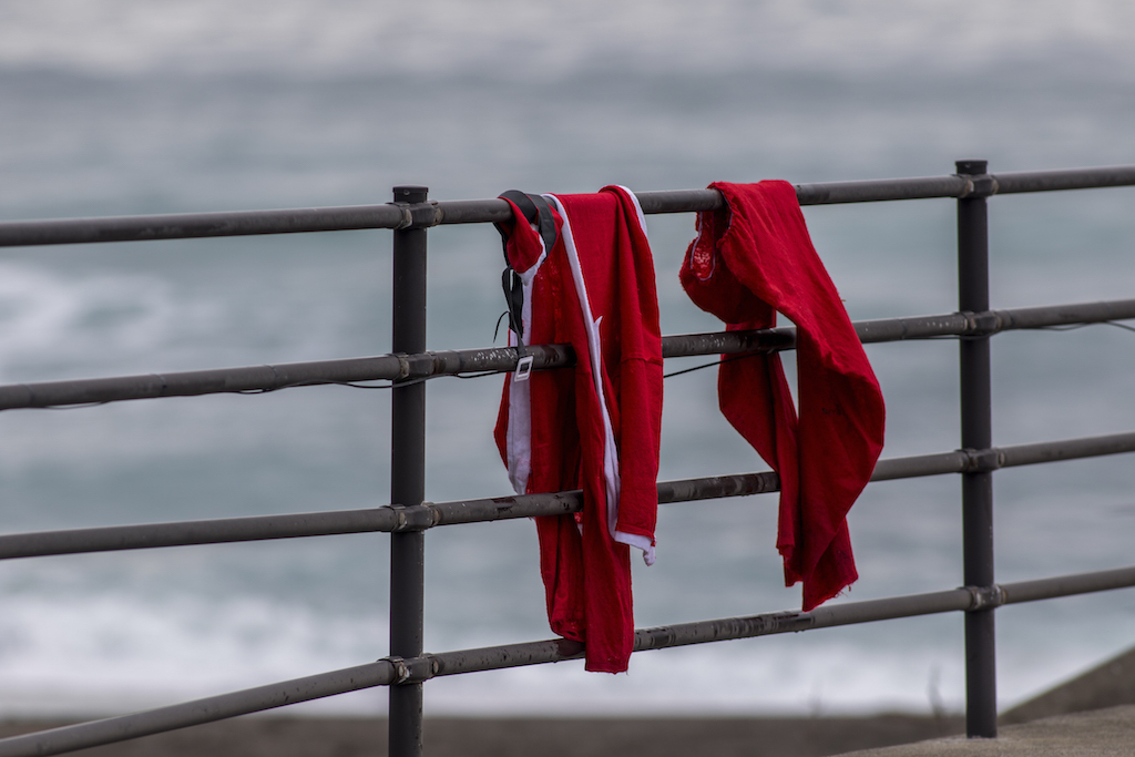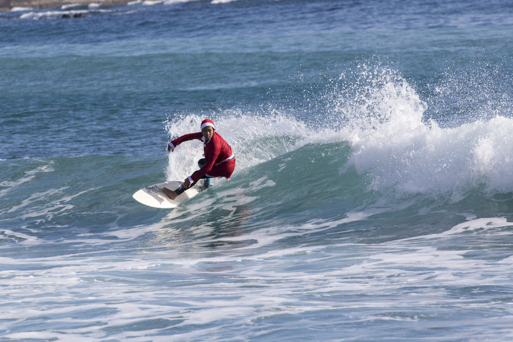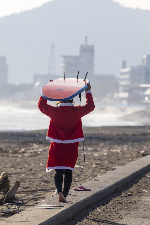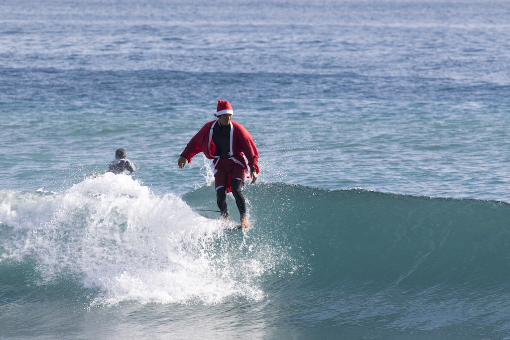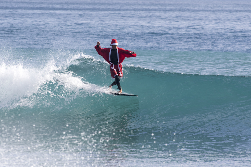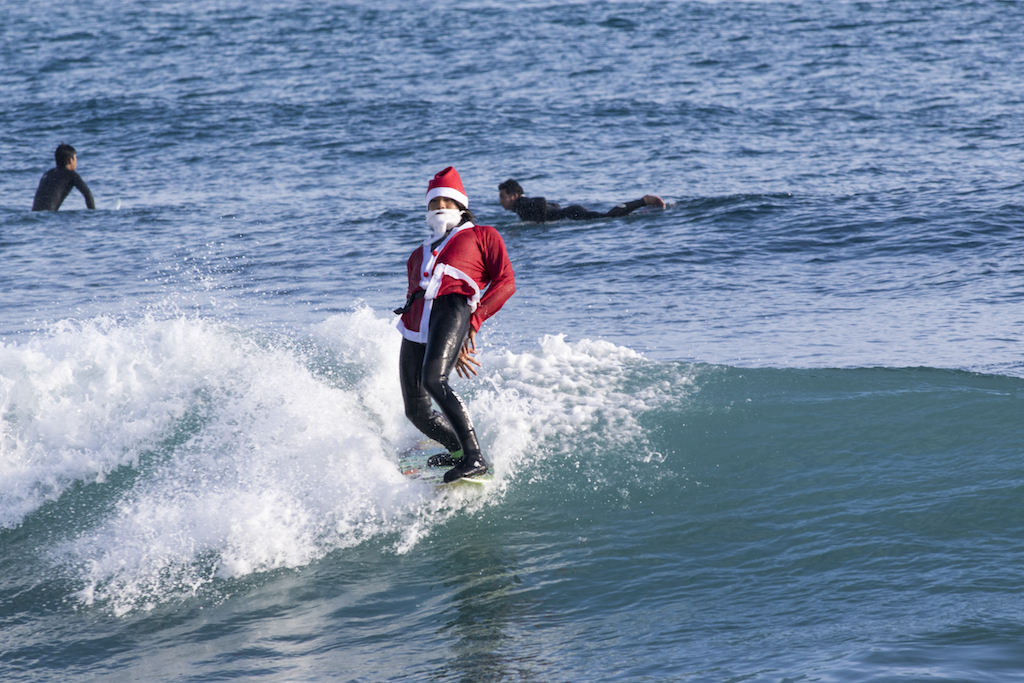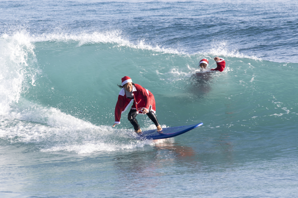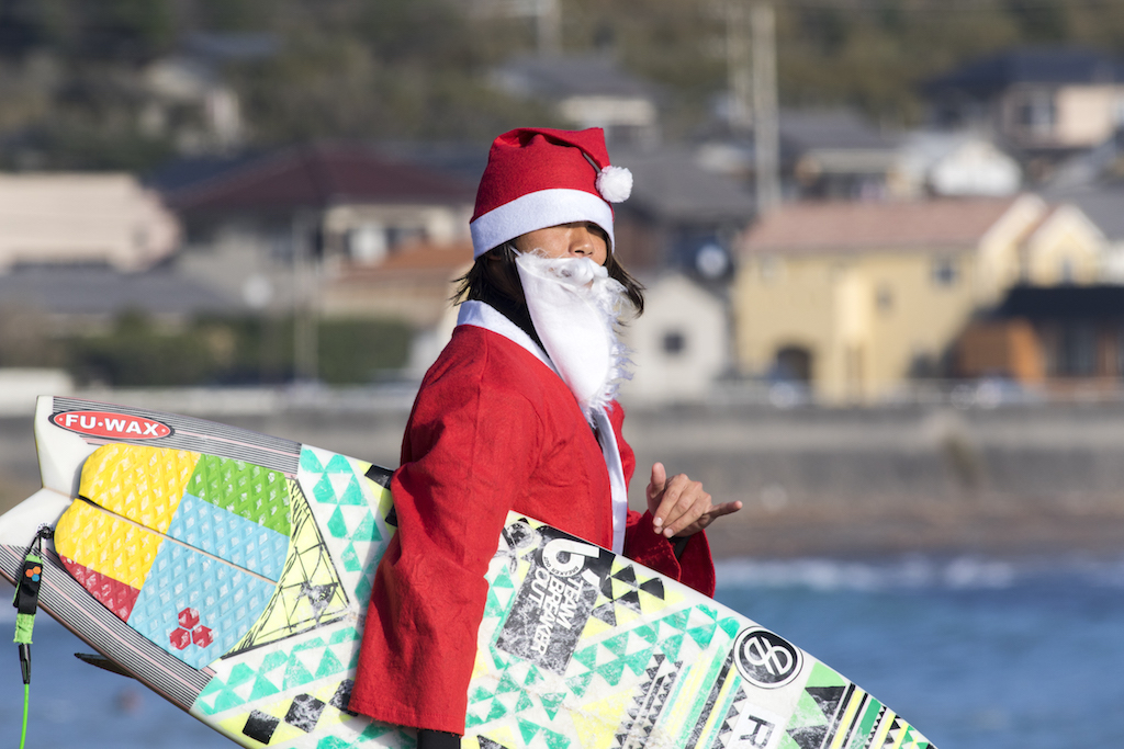 Santa san delivered a full day of great surf at Kamogawa’s Maruki point, and everyone was in the holiday spirit challenging the Santa suits!