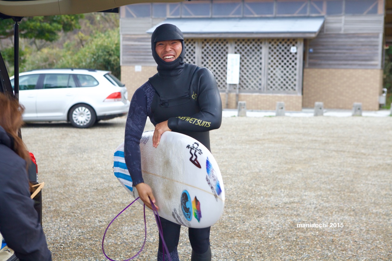 しばらく張り付いて波をチェックしていると最初に間屋口峻英が到着!