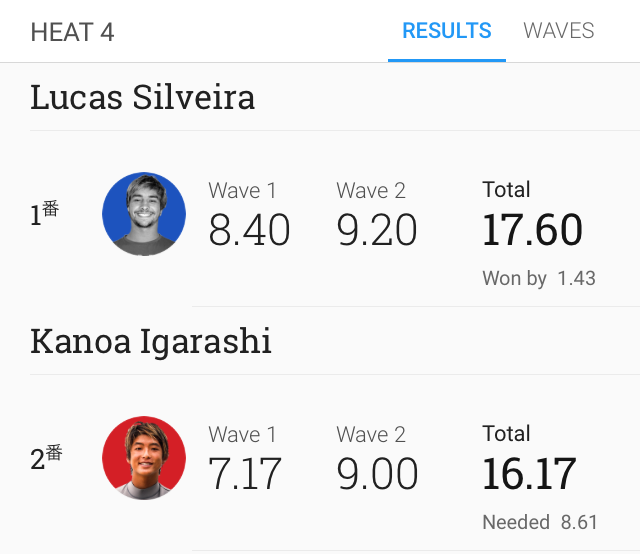 残る日本人サーファーもMENSではカノア五十嵐のみとなり、