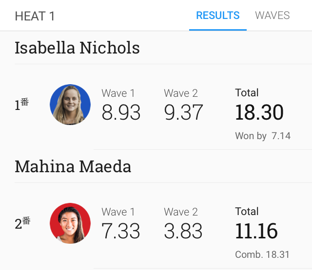 Soli Baileyが1本目の波で7.33ptのグッドスコアをマークすると、