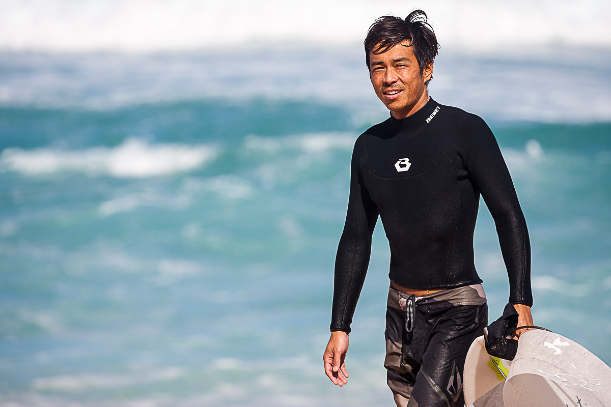 行く手を阻まれまくった挙句にサーフボードが3枚おろしとなった辻裕次郎。