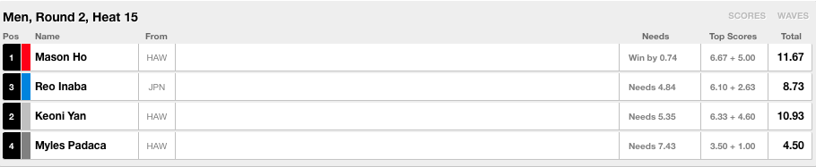 ラウンド2のヒート15でMason Ho(HAW)、Keoni Yan(HAW)、