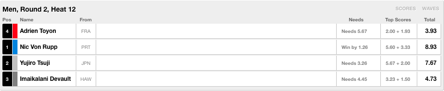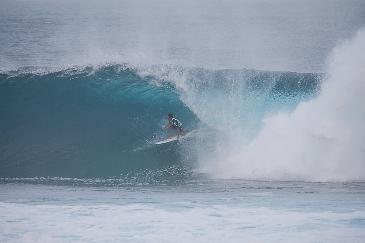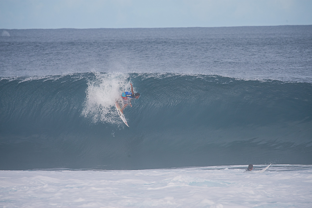 Imaikalani Devault(HAW)を相手に見事なバックドアチューブをメイクし、