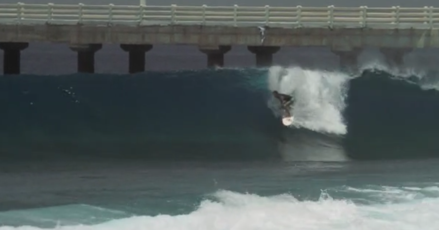 インドの見果てぬどこかのビーチで、ピア脇からブレイクする